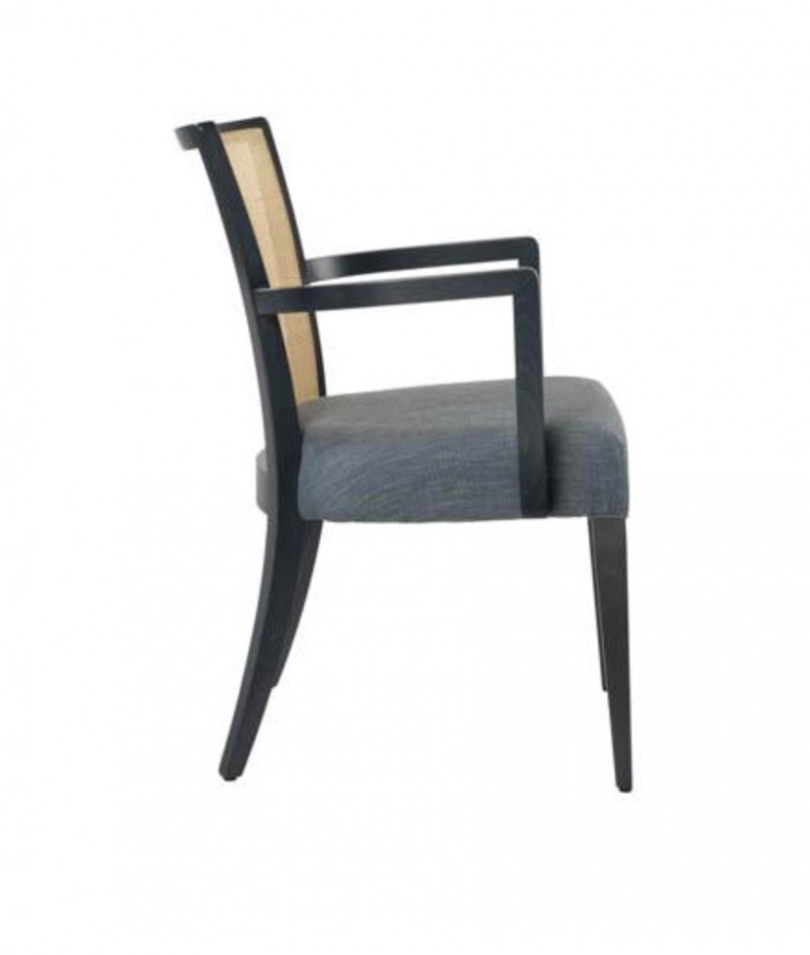 Area EDITION Abby SB04 Arm Chair has been designed for hospitality projects with a cost effective price point / Beech Frame Standard / Additional wood stain finishes available / Upholstered Seat with Cane Back Standard / Intergrated Arms / Ideal for Hotels and Restaurants