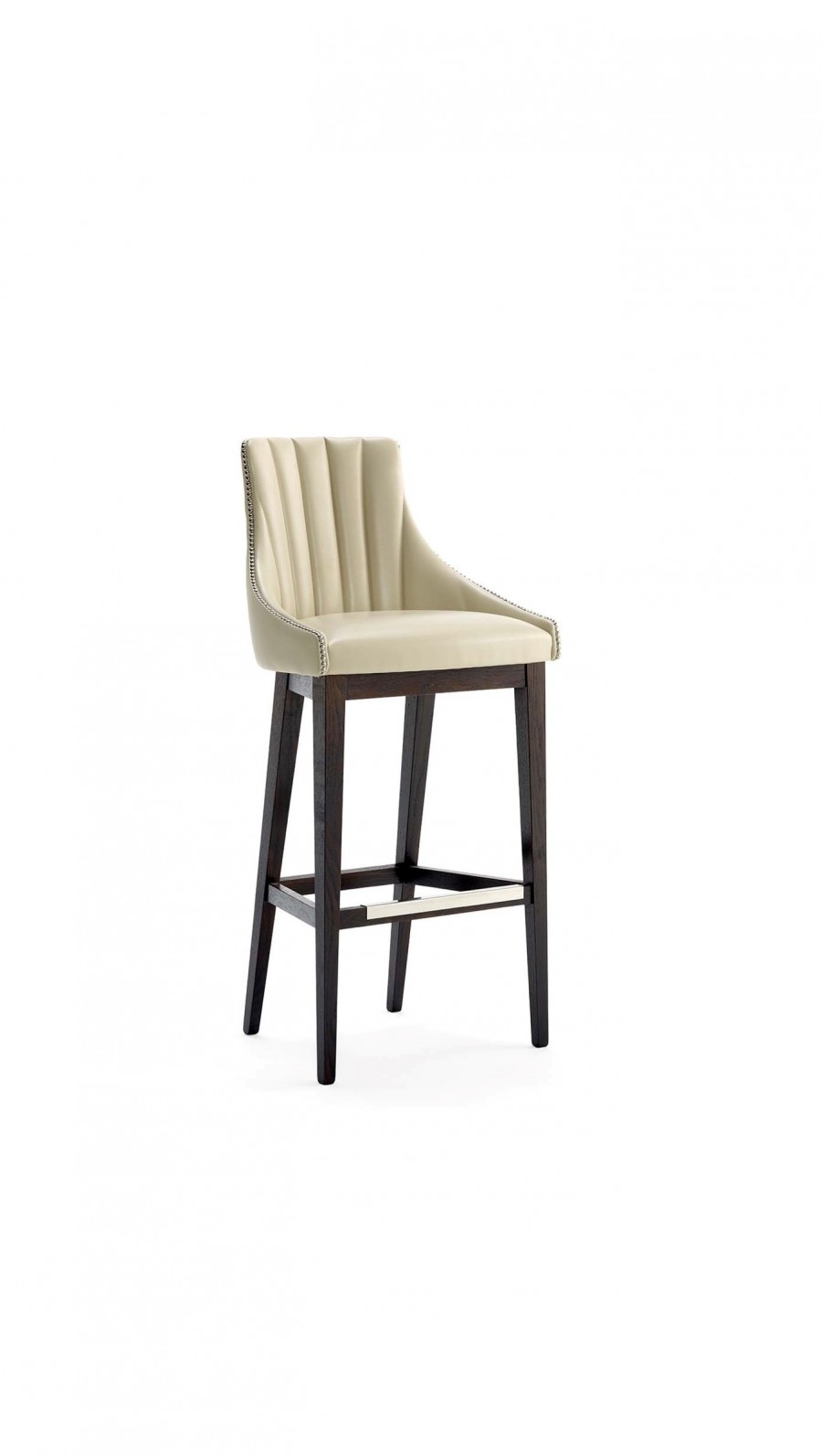 Area EDITION Albert-One SG SCL Splendor Bar Stool has been designed for hospitality projects with a cost effective price point / Beech Frame Standard / Upcharge for additional wood stain finishes / Upcharge For Nail Head Finish / Upholstered Seat and Back Standard with Vertical Stitch Line / Braced with Metal Protective Foot Rest / Ideal for Hotels and Restaurants