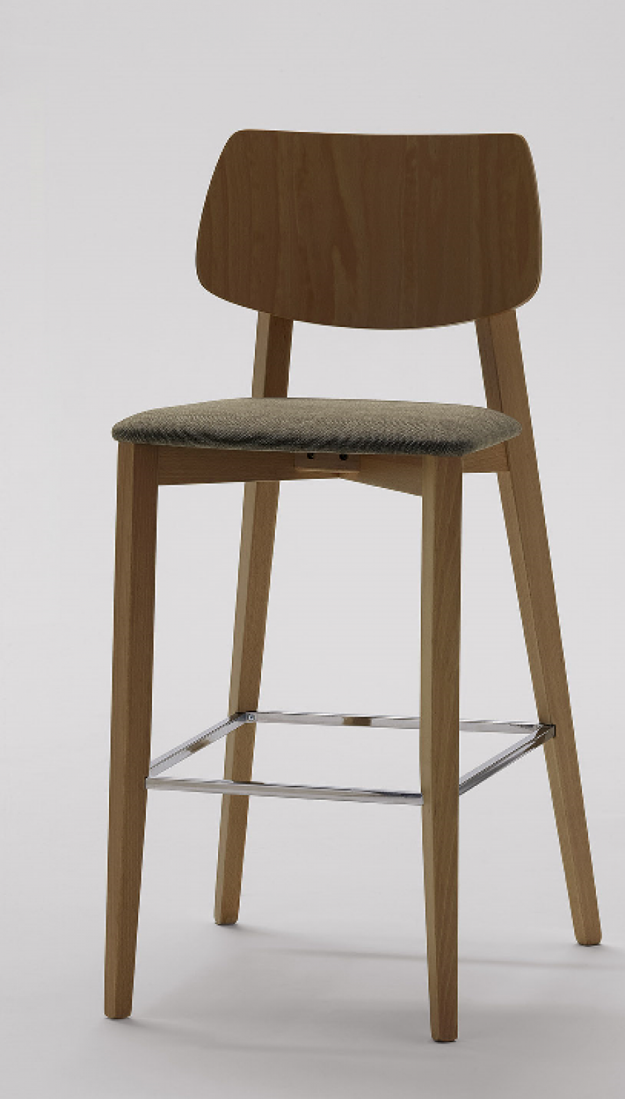 Area EDITION Alma 01 Counter and Bar Stool has been designed for hospitality projects with a cost effective price point / Beech Frame Standard / Additional wood stain finishes available / Upcharge for Upholstered Seat and Internal Back Pad / Curved Plywood Back Standard / Black or grey powder coated painted integrated footrest standard / Polished brass or copper integrated footrest upcharge / Available With Plywood Seat And Back / Braced for Heavy Contract Use / Ideal for Hotels and Restaurants