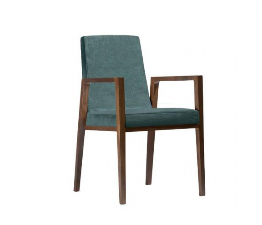 Area EDITION Arisa Arm Chair has been designed for hospitality projects with a cost effective price point / Beech Frame Standard / Additional wood stain finishes available / Fully Upholstered Seat and Back / Integrated Arms / Ideal for Hotel Applications, Restaurants and General Guest Chair