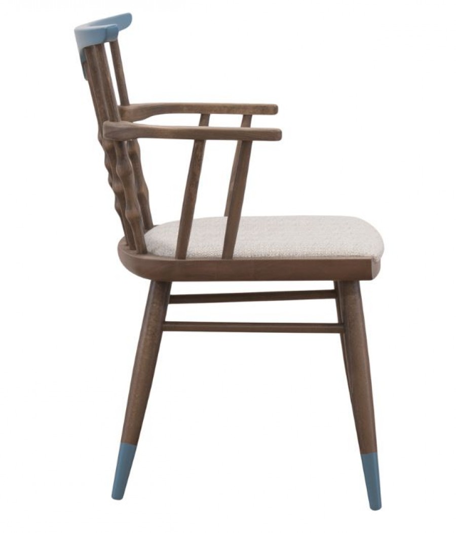 EDITION Ajax Arm Chair / Beech Frame Standard / Additional Wood Stain Finishes Available / Integrated Arms / Fully Upholstered Seat / In A Wide Choice Of Fabric Options / Wooden Tapered Legs / On Glides / Braced On Sides For Added Strength / Generous Seating Proportions / Unique Rodded Back Detailing / Top Of Back And Tips Of Legs Are Available In Various Colour Options / Ideal for Coffee Shops and Restaurants