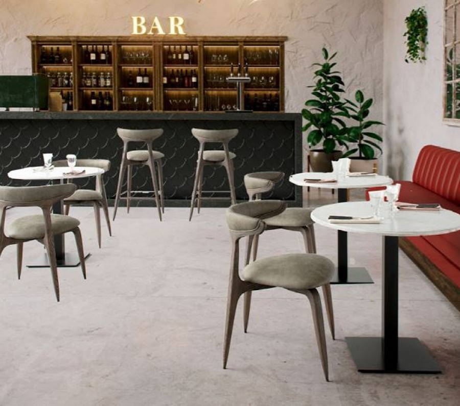 Area EDITION Banff Side Chair / Ash Wood Frame Standard / Upcharge For Various Wood Stain Finishes / Tapered Legs On Glides For Added Detail / Stackable / Wrap Around Back / Upholstered Seat And Back Standard / Various Leathers And Fabric Finishes / Ideal for Hotels and Restaurants