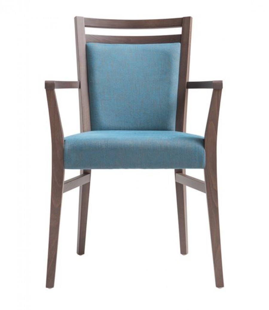 EDITION Baker Arm Chair / Beech Wood Frame Standard / Upcharge For Various Wood Stain Finishes / Tapered Legs On Glides For Added Detail / Upholstered Plywood Seat And Back Standard / Well Padded Seating / Various Leathers And Fabric Finishes / Braced On Sides For Added Strength / Integrated Arms / Integrated Handle At Top Of Back For Extra Detail / Ideal for Hotels and Restaurants