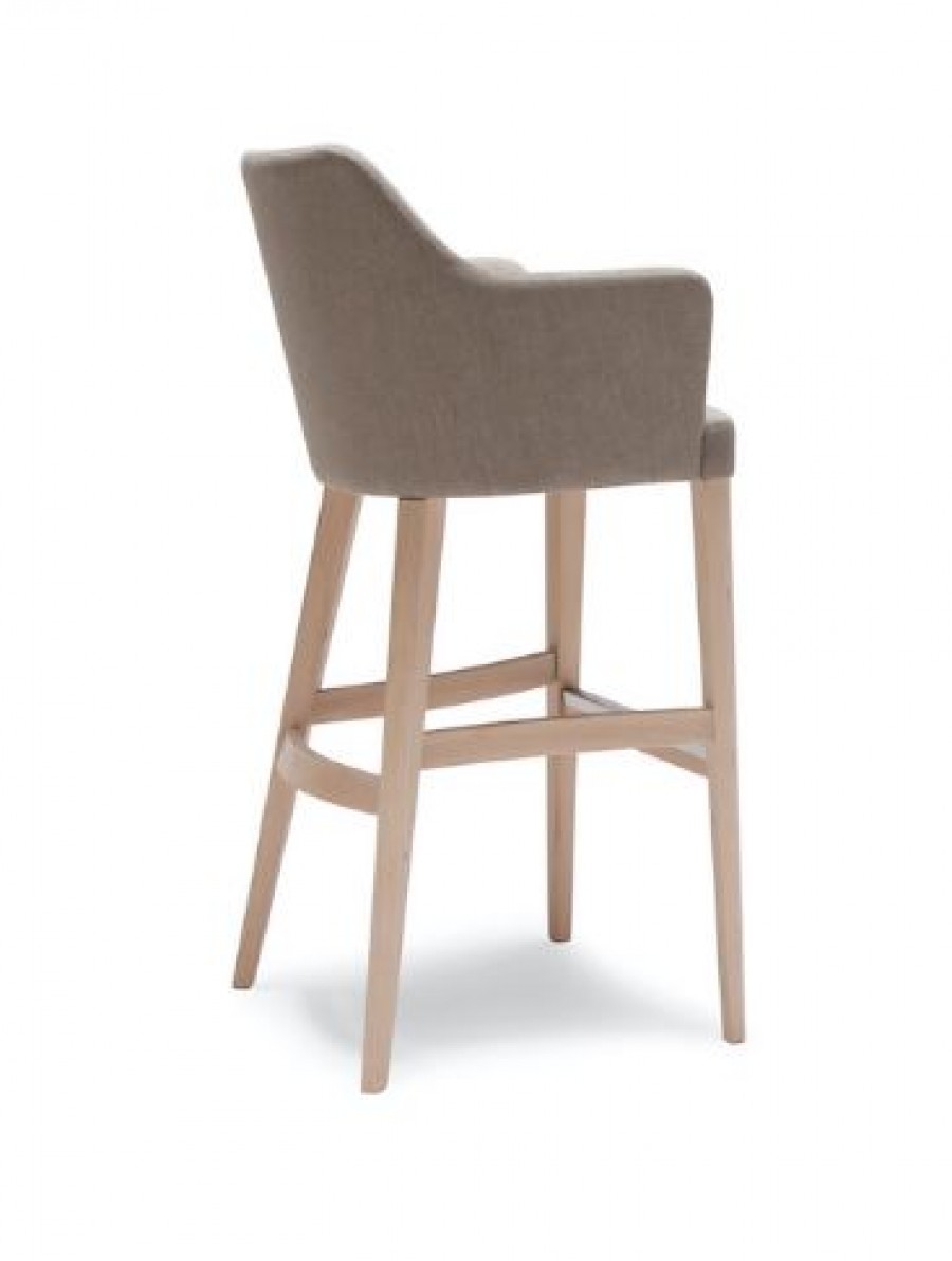 EDITION Berwick Bar Stool / Beech Wood Frame Standard / Upcharge For Various Wood Stain Finishes / Tapered Legs On Glides For Added Detail / Upholstered Plywood Seat And Back Standard / Integrated Arms / Well Padded Seating / Various Leathers And Fabric Finishes / Generous Seating Proportions / Integrated Foot Rest / Ideal for Hotels and Restaurants