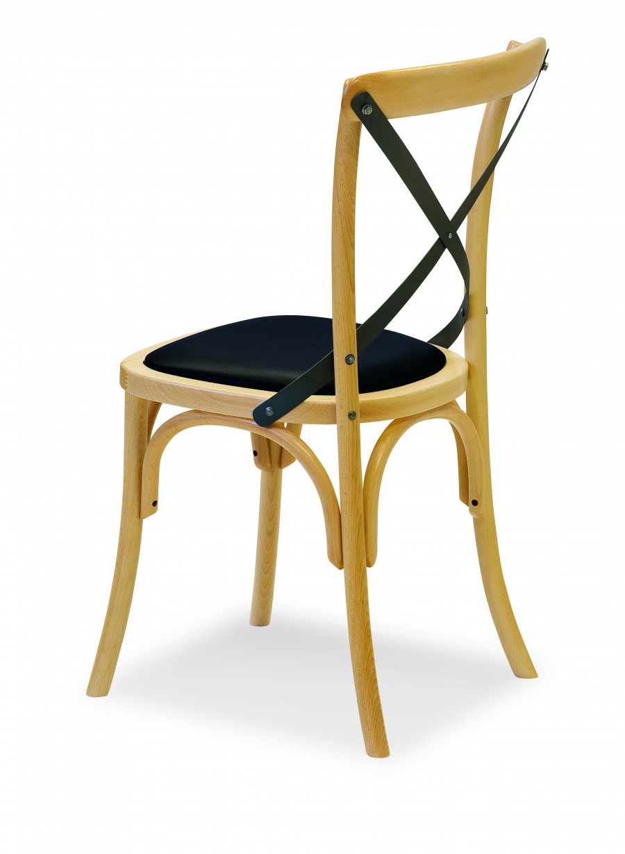 Area EDITION Ciao/Iron Chair has been designed for hospitality projects with a cost effective price point / Beech Frame Standard / Additional wood stain finishes available / Upholstered Seat Standard / Metal braced cross bars on back available in antique finish or sold black painted finish / Ideal for Coffee Shops and Restaurants.