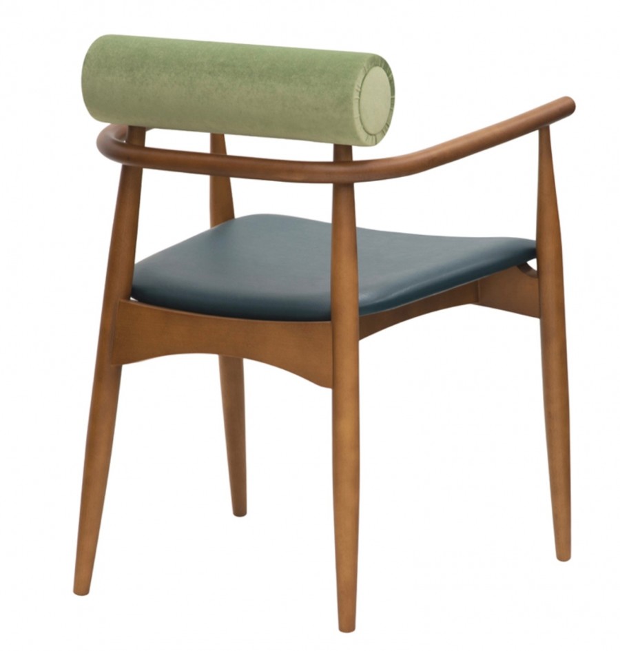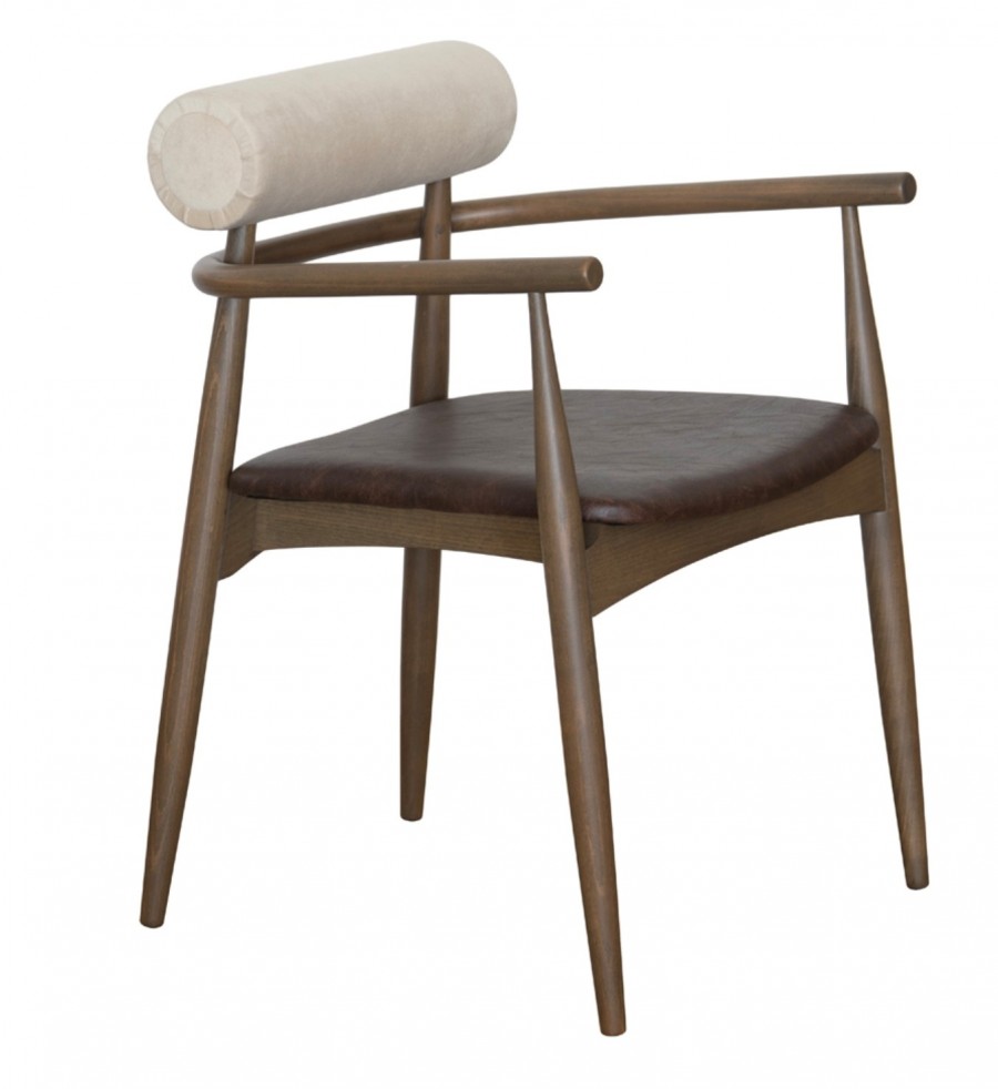 EDITION Comox Arm Chair / Beech Wood Frame Standard / Upcharge For Various Wood Stain Finishes / Integrated Arms / Tapered Legs On Glides For Added Detail / Exposed Frame Detailing / Upholstered Seat Standard / Various Leathers And Fabric Finishes / Fully Upholstered Log Back Rest / Ideal for Hotels and Restaurants