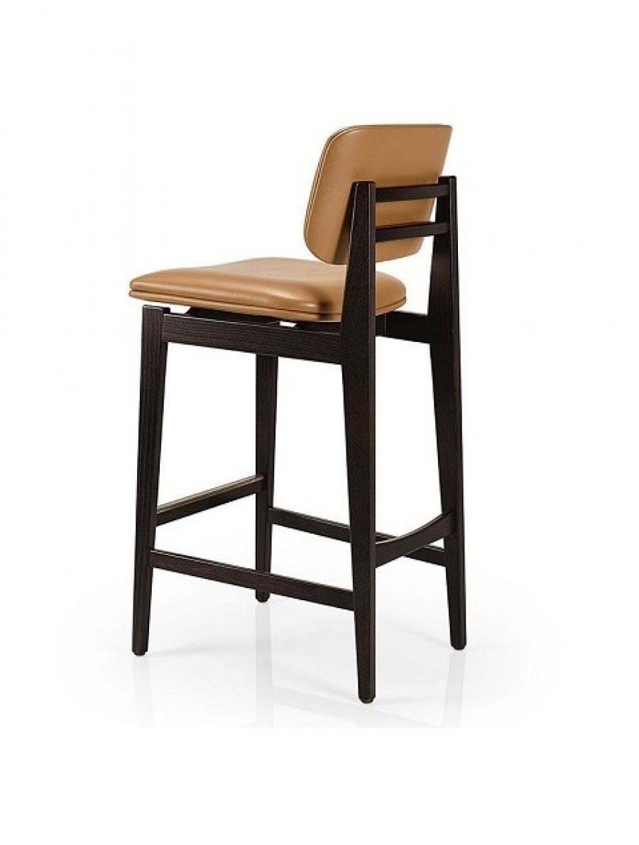 EDITION Douglas Bar Stool / Beech Frame Standard / Additional Wood Stain Finishes Available / Fully Upholstered Seat And Back / In A Wide Choice Of Fabric Options / Wooden Tapered Legs / On Glides / Braced On Sides For Added Strength / Generous Seating Proportions / Exposed Frame Detailing / Integrated Foot Rest / Ideal for Coffee Shops and Restaurants