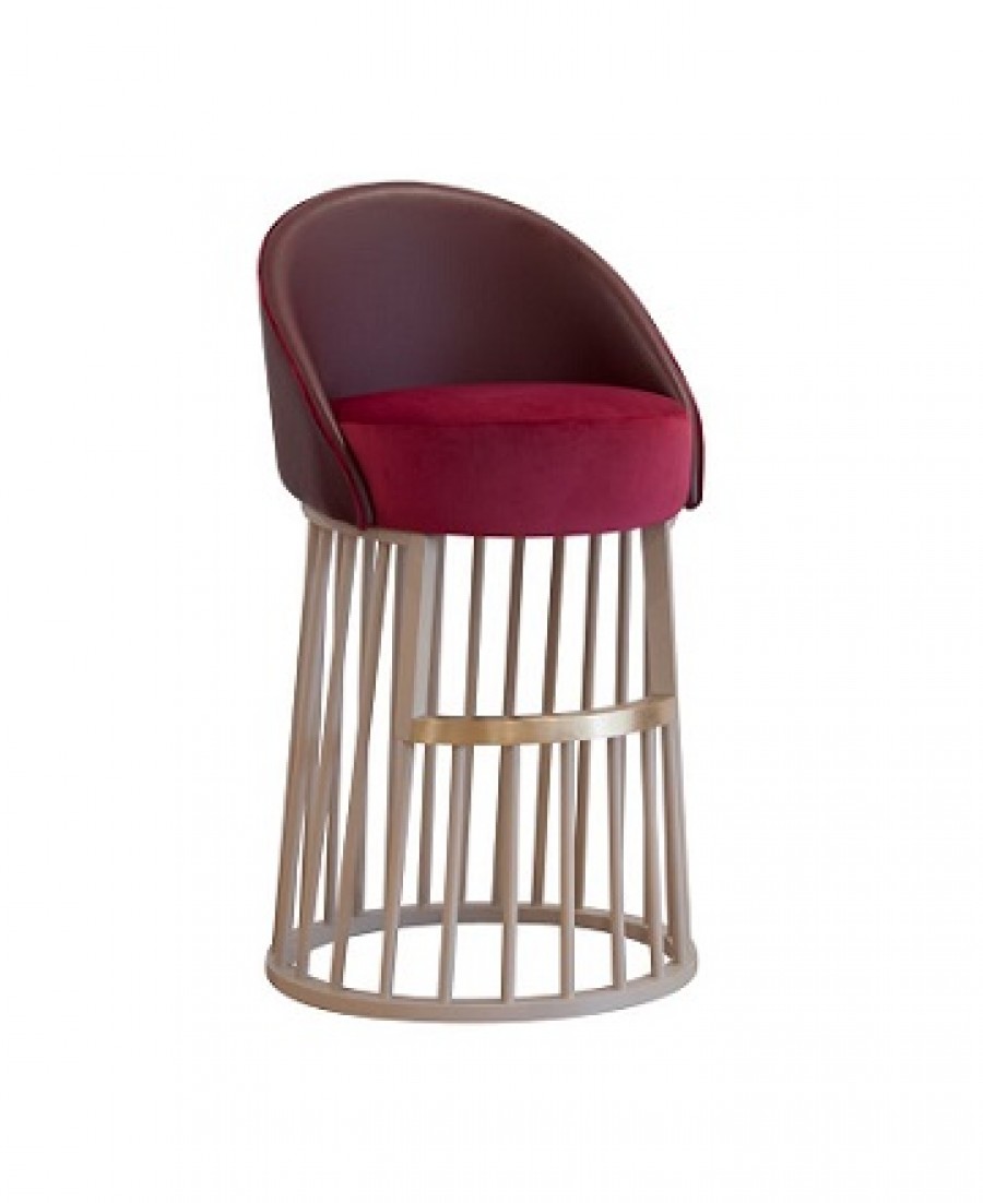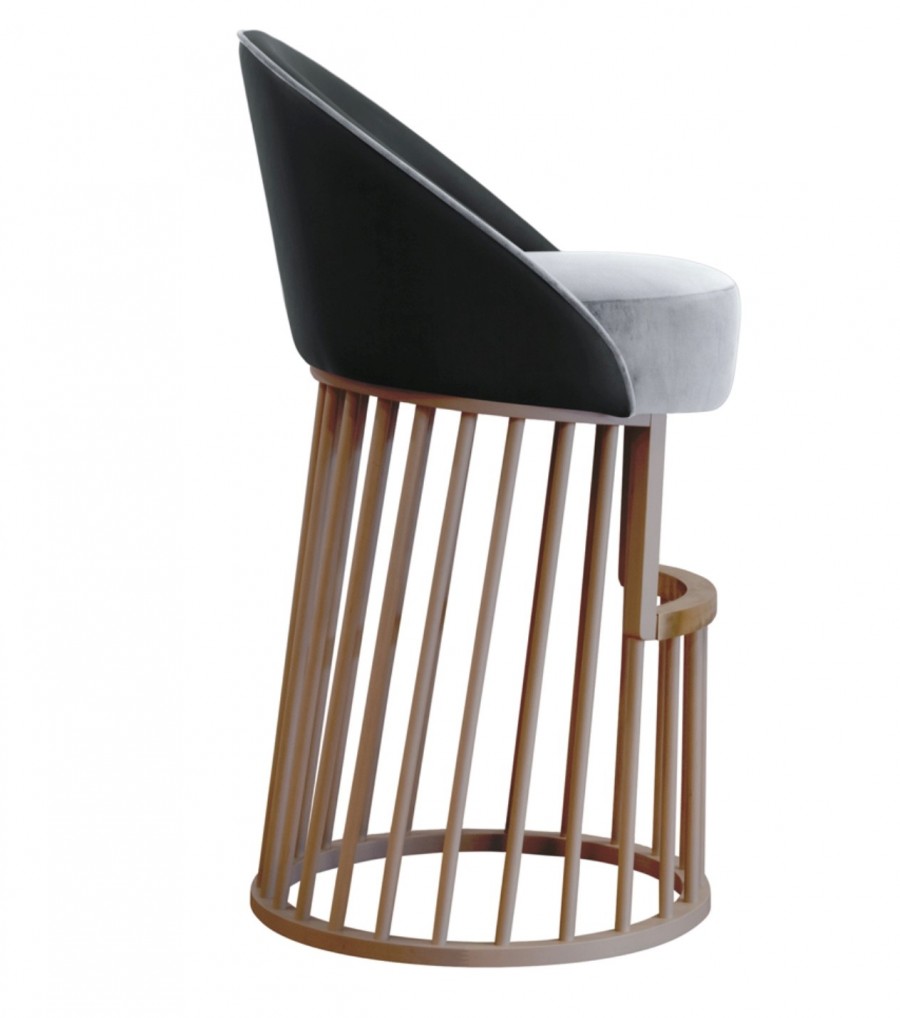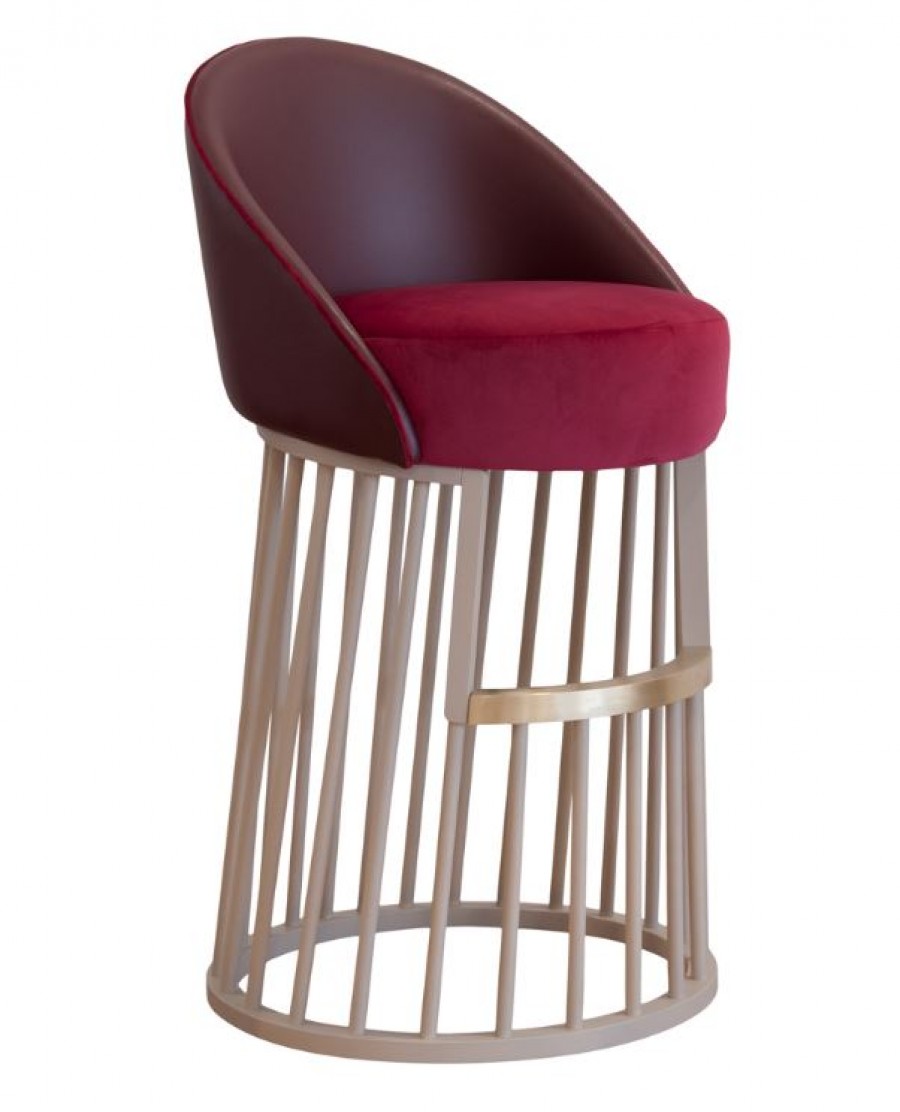 EDITION Hanover Bar Stool / Beech Wood Rodded Frame Standard / Upcharge For Various Wood Stain Finishes / Unique Rodded Slat Frame Design / Exposed Frame Detailing / Integrated Foot Rest / Brass Metal Protective Strip On Foot Rest Standard / Upholstered Seat And Back Standard / Various Leathers And Fabric Finishes / Upholstered Piping On Seams For Extra Detail / Ideal for Hotels and Restaurants