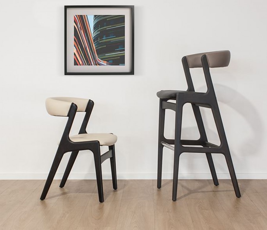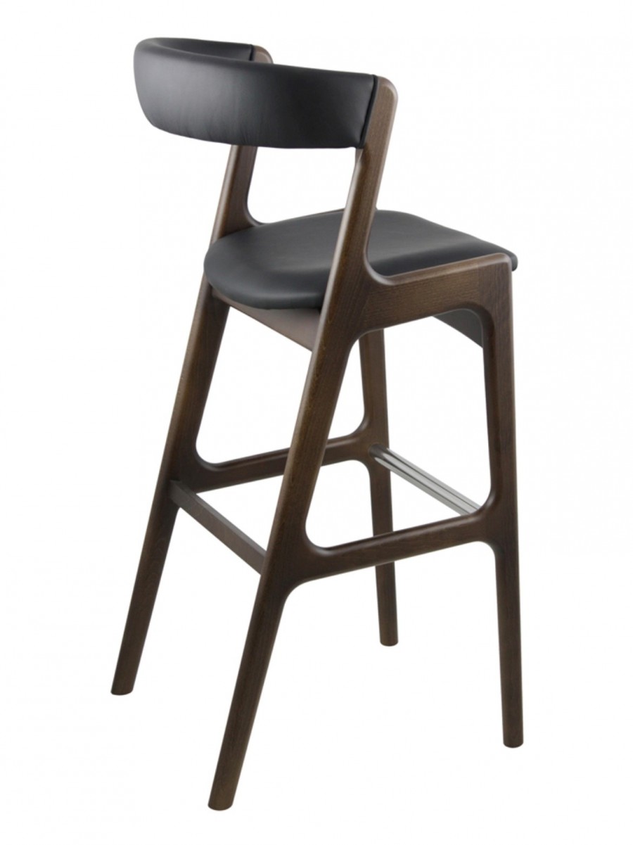 Area EDITION Horton Bar and Counter Stool / Ash Frame Standard / Additional Wood Stain Finishes Available / Upholstered Seat And Back Standard / Curved Plywood Upholstered Back Standard / Braced On Front For Added Strength And Detail / Integrated Foot Rest / Ideal for Hotels and Restaurants