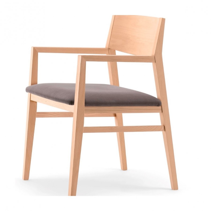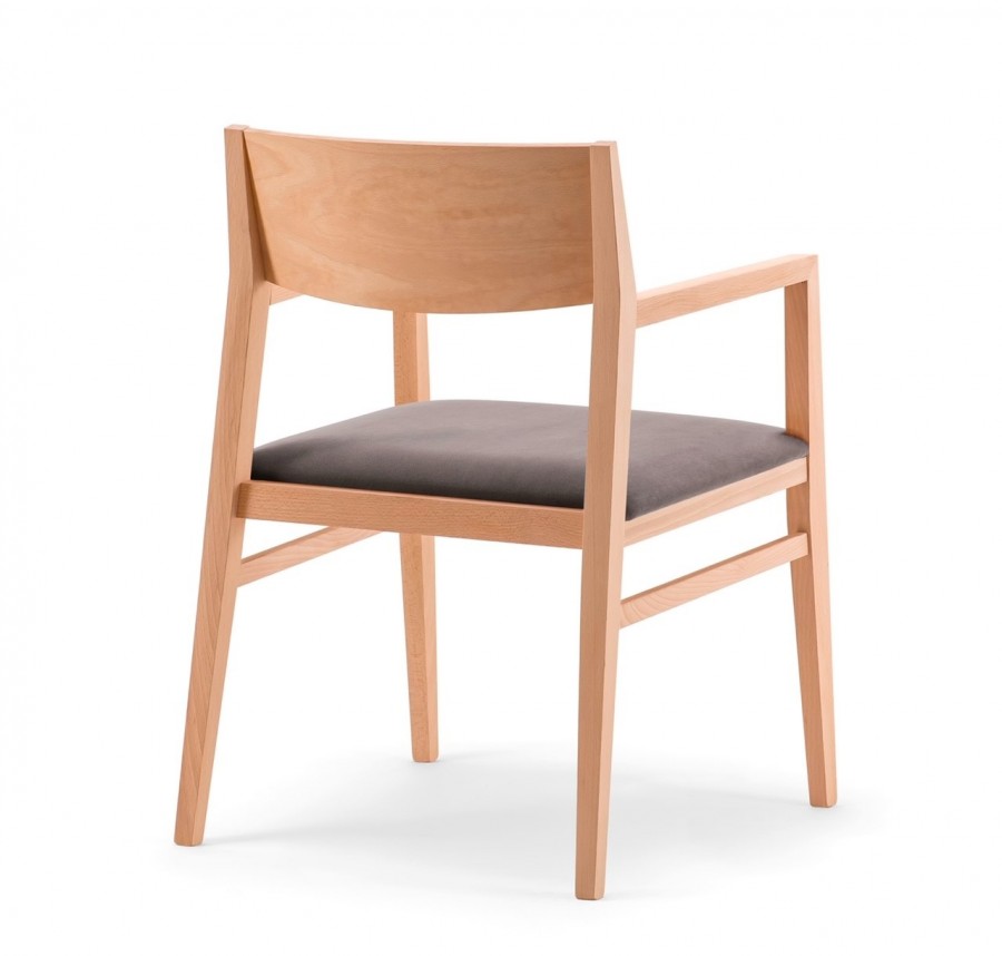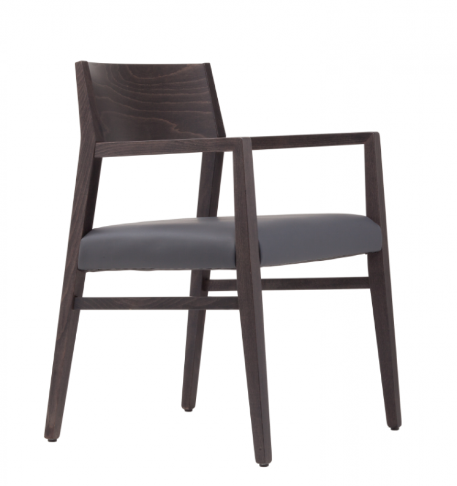 Area EDITION Jimmy 01 A1 Arm Chair has been designed for hospitality projects with a cost effective price point / Beech Frame Standard / Additional wood stain finishes available / Integrated Arms / Braced for Heavy Contract Use / Two versions available of upholstered seat: Top surface upholstered or Fully upholstered seat including seat sides / Standard chair not stackable / Upcharge for stackable version / Ideal for Hotels and Restaurants