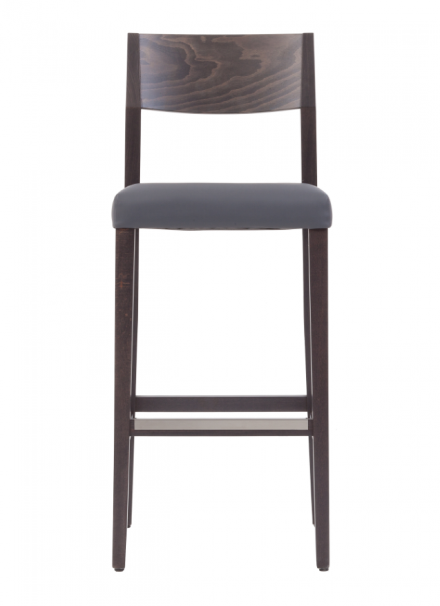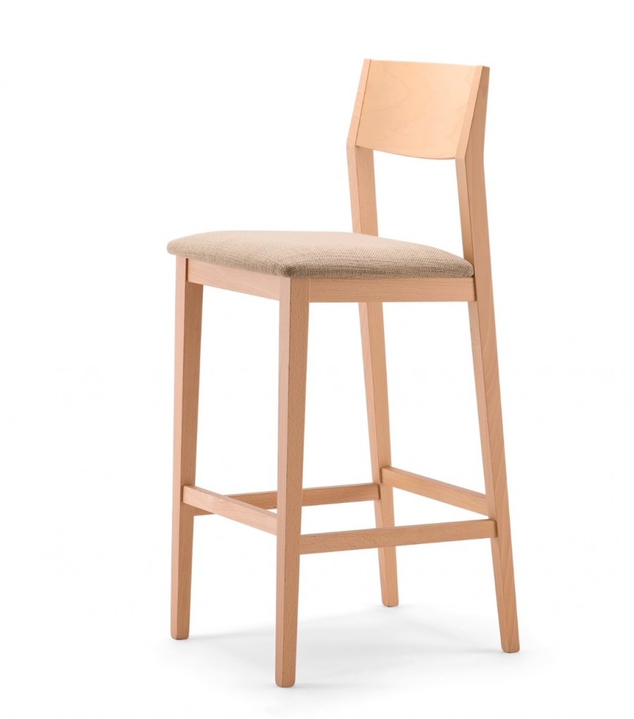 Area EDITION Jimmy 01 S1 Stool / Available in counter and bar height / Designed for hospitality projects with a cost effective price point / Beech Frame Standard / Additional wood stain finishes available / Two versions available of upholstered seat: Top surface upholstered or Fully upholstered seat including seat sides / Metal Protective Footrest / Not stackable / Ideal for Hotels and Restaurants.