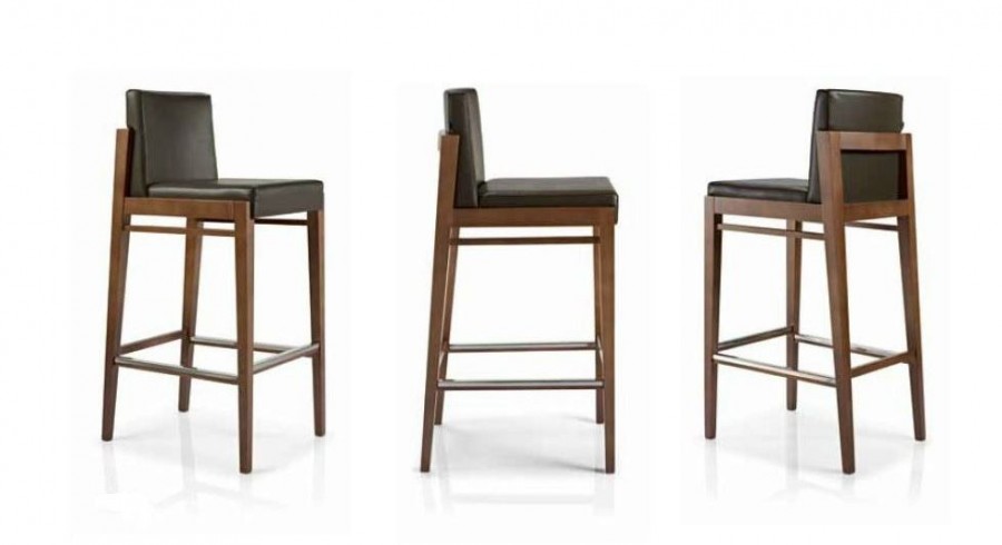 EDITION JensonBar Stool / Beech Frame Standard / Additional Wood Stain Finishes Available / Fully Upholstered Seat And Back / In A Wide Choice Of Fabric Options / Wooden Tapered Legs / On Glides / Braced On Sides For Added Strength / Generous Seating Proportions / Exposed Frame Detailing / Integrated Foot Rest / Ideal for Coffee Shops and Restaurants