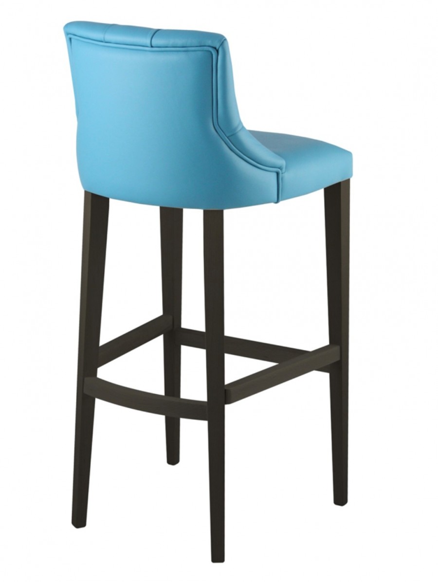 EDITION Prescot Bar and Counter Stool / Beech Wood Frame Standard / Upcharge For Various Wood Stain Finishes / Tapered Legs On Glides For Added Detail / Upholstered Seat And Back Standard / Well Padded Seating / Various Leathers And Fabric Finishes / Buttoned Inner Back For Added Detail / Integrated Foot Rest / Ideal for Hotels and Restaurants
