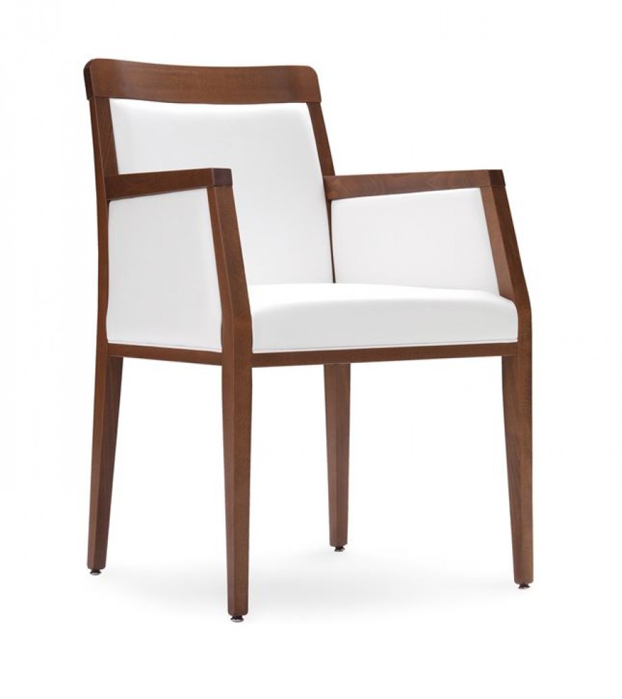 EDITION Tanto Closed Arm Chair / Beech Wood Frame Standard / Upcharge For Various Wood Stain Finishes / Integrated Arms Fully Upholstered / Tapered Legs On Glides For Added Detail / Upholstered Seat And Back Standard / Well Padded Seating / Various Leathers And Fabric Finishes / Ideal for Hotels and Restaurants