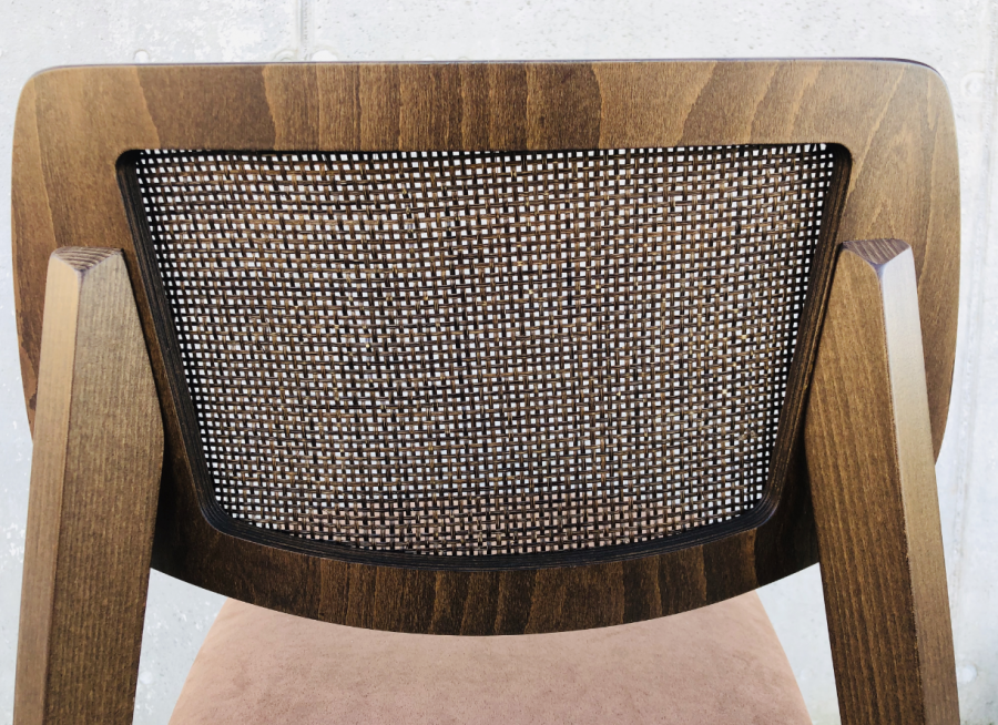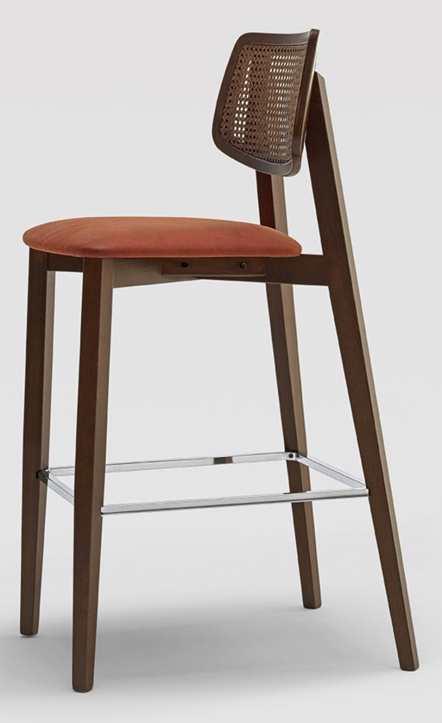 Area EDITION Alma 02 Cane Back Chair and Barstool has been designed for hospitality projects with a cost effective price point / Beech Frame Standard / Additional wood stain finishes available / Upcharge for Upholstered Seat / Cane Back Standard / Available With Plywood Seat And Cane Back / Braced for Heavy Contract Use / Stackable / Integrated footrest on barstool / Ideal for Hotels and Restaurants.