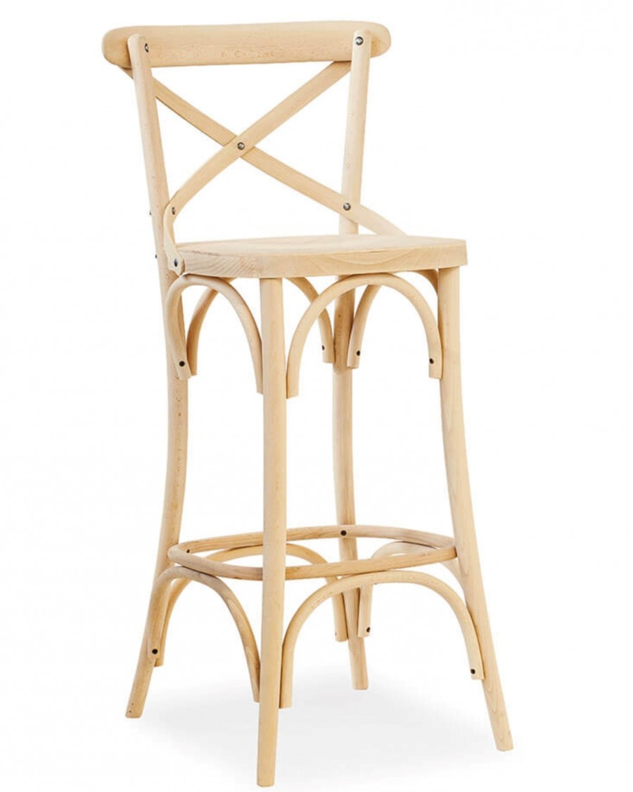 Baxter Bar Stool / This classic design side chair comes in beech frame as standard / Curved braces under seat all round / Upcharge for additional wood stain or colour finish / On nylon glides / Upcharge for seat pad for additional comfort / Can be upholstered in fabric, vinyl or leather / Ideal for all coffee shops, restaurants and hotels.
