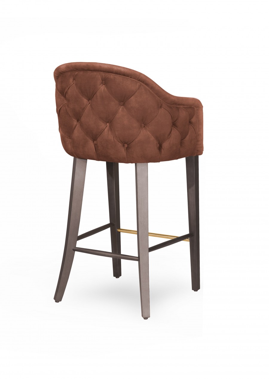 EDITION Caesars Stool / Available in counter and bar height / Plywood construction shell / Well padded seat / Outer back with deep button detail / Upcharge for contrasting buttons / Can be upholstered in fabric, vinyl or leather / Upcharge for two-tone upholstery / Beech tapered wooden legs standard / On nylon glides / Upcharge for additional wood stain finishes / Integrated metal protective footrest / Offers excellent seating proportions / Ideal for restaurants, cocktail bars and casinos.