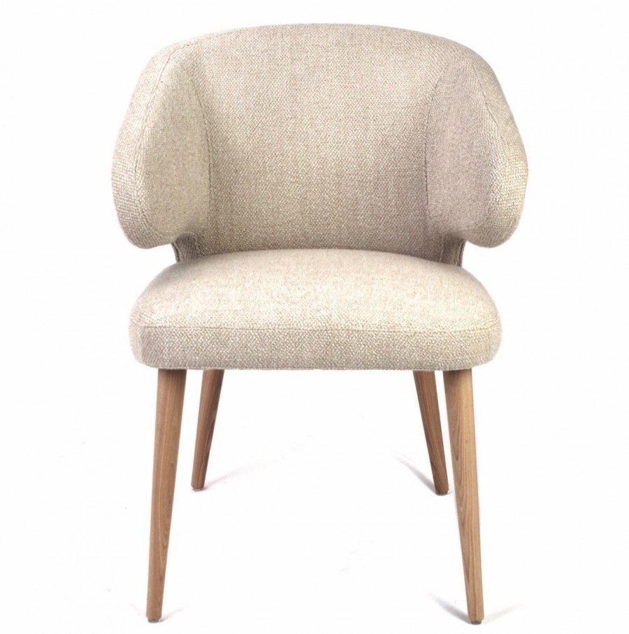 EDITION Caroline Armchair / Wrap around back for added comfort / Generous seating proportions / Well padded seat and back / Round tapered wooden legs / On nylon glides / Upcharge for two-tone upholstery / Ideal for restaurants, country clubs and casinos.