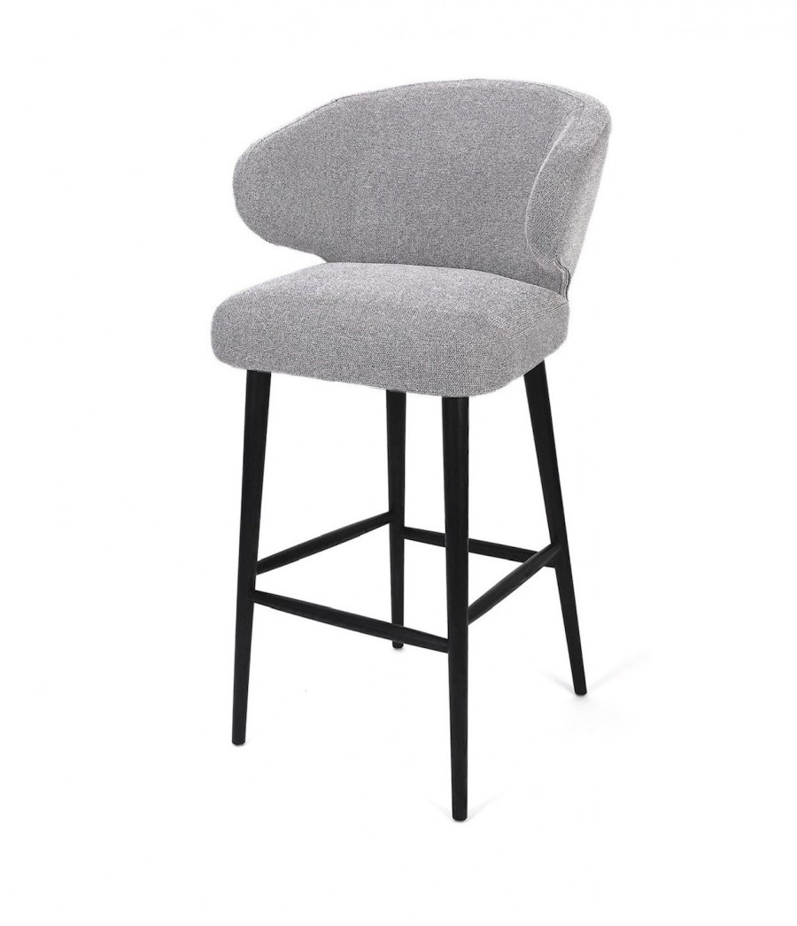 EDITION Carolina Stool / Available in counter and bar height / Wrap around back for added comfort / Integrated footrest /Generous seating proportions / Well padded seat and back / Round tapered wooden legs / On nylon glides / Upcharge for two-tone upholstery / Ideal for restaurants, country clubs and casinos.