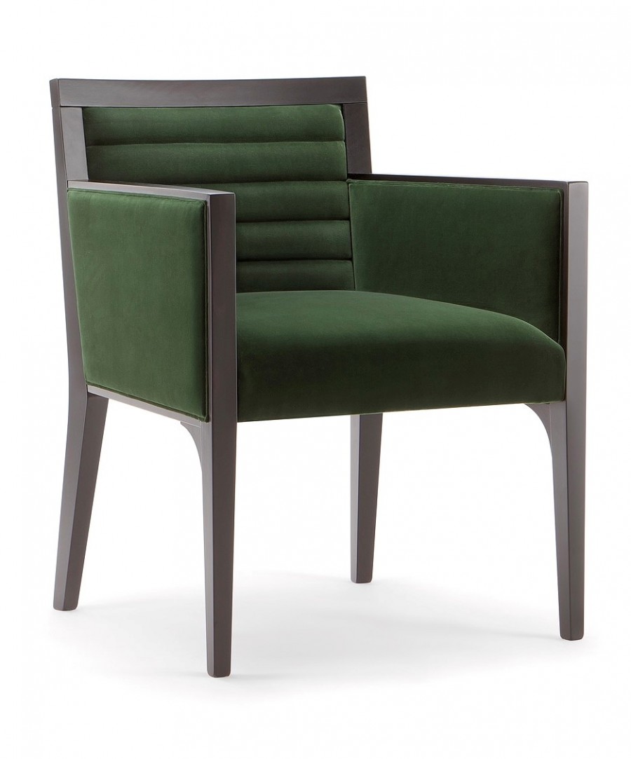 Edition Louver Arm Chair / Beech Frame Standard / Integrated Arms With Infill Upholstered Panels / Wooden Capping Integrated Into Tapered Legs / On Glides / Frame Runs Round Edge Of Back For Added Detail / Upcharge For Additional Wood Stain Finishes / Fully Upholstered Seat / Sprung / Well Padded For Contract Use /Only Internal Back Has Horizontal Stitch Lines For Added Upholstery Detailing / Upcharge For Two Tone Upholstery / Can Be Upholstered In Fabric, Vinyl Or Leather / Ideal For All Restaurants, Bars, Casinos And Country Clubs