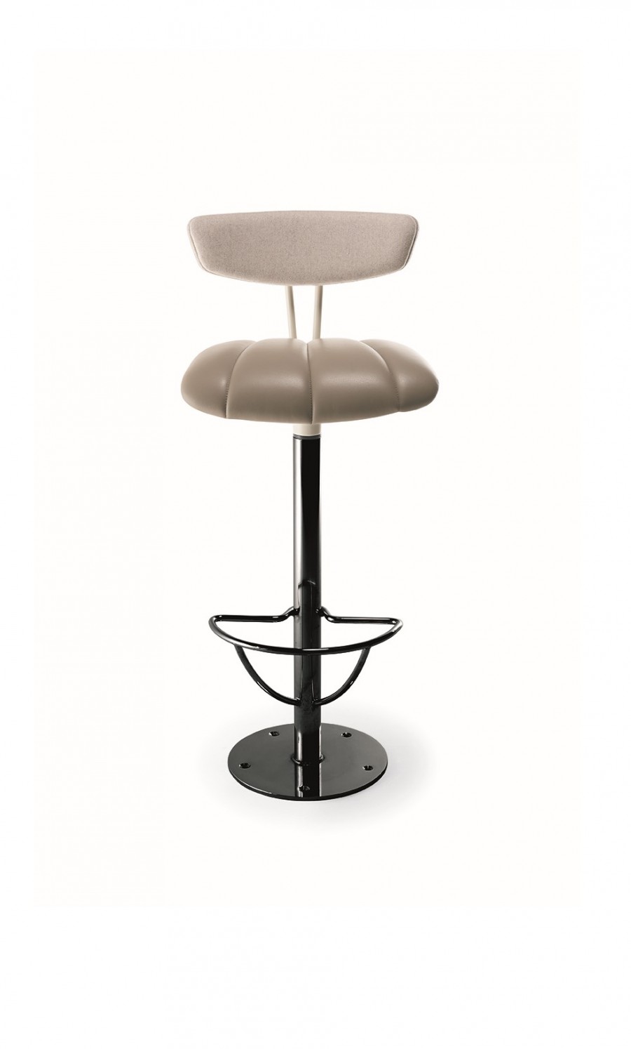 Swivel Bar Stool / All Models Available With Upholstered Seat With Stitching Lines For Added Detail / Upholstered In Fabric Vinyl Or Leather / Back Can Be Plywood, Plywood With Internal Upholstered or Fully Upholstered Back / Base Available In Various Colour Options With Foot Rest And Floor Fixing / Ideal In All Restaurants, Bars, Coffee Shops And Casinos