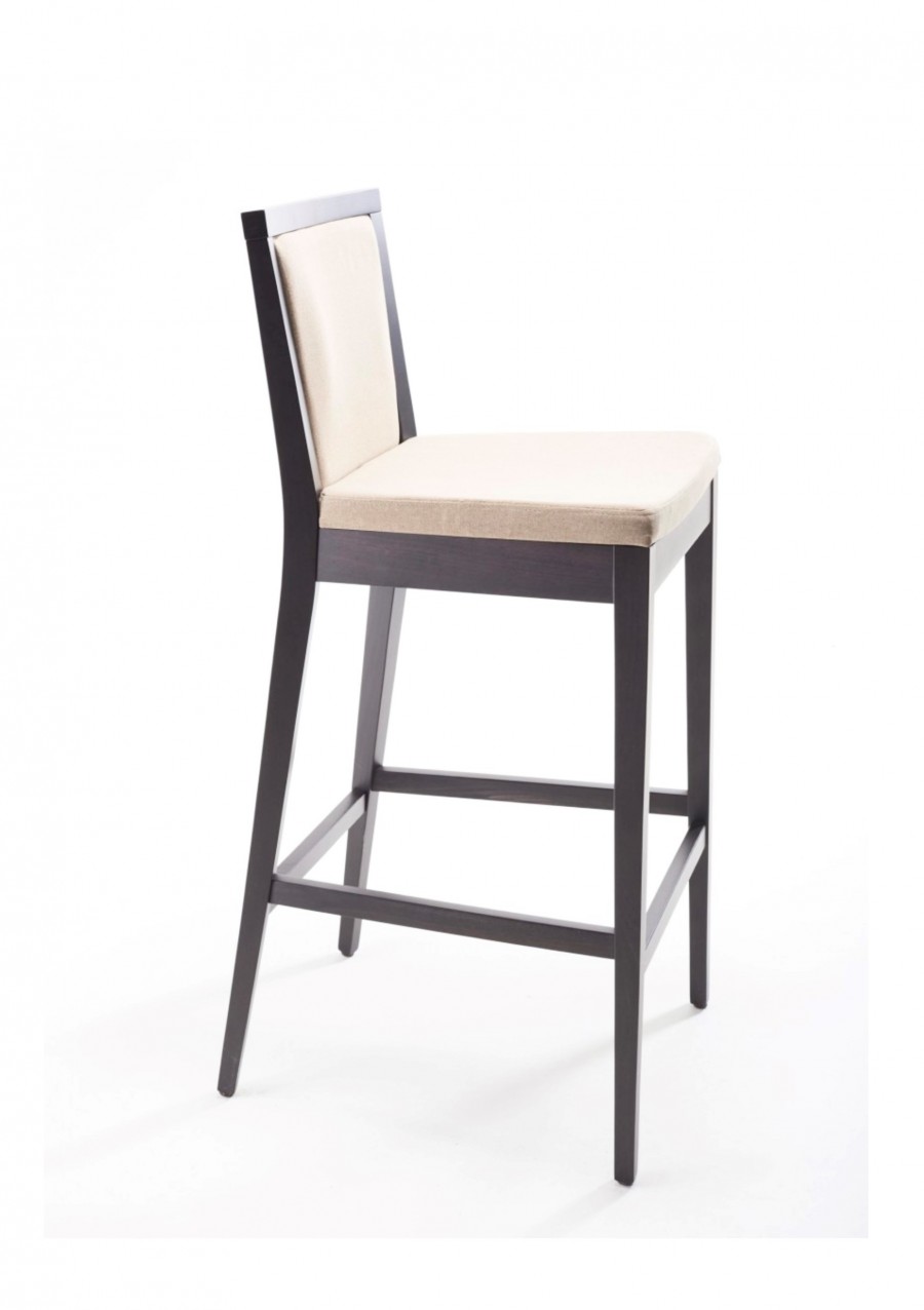 Encore. Stool 4 Legged Beech Frame Standard / Upcharge for Additional Wood Stain Finishes / Tapered Legs / Braced On Side For Heavy Contract Use / Frame Runs Round The Back For Added Strength And Detail / Fully Upholstered Seat And Back / Can Be Upholstered in Fabric, Vinyl or Leather In A Wide Choice Of Finishes / Ideal For Restaurants, Hotels And Casino Areas