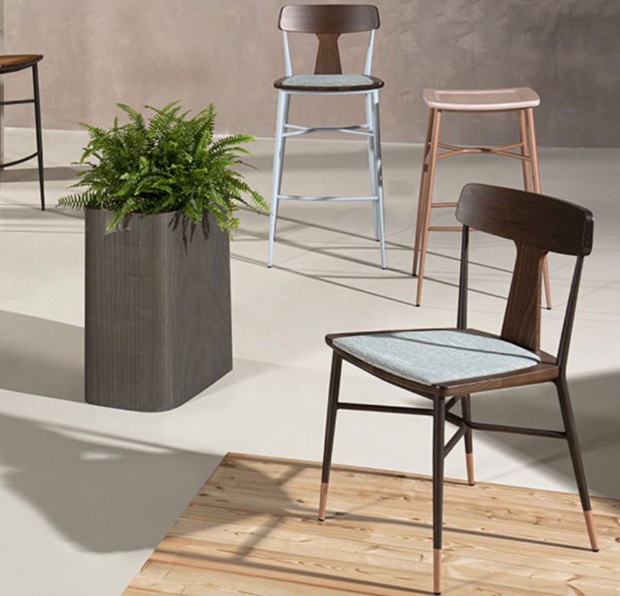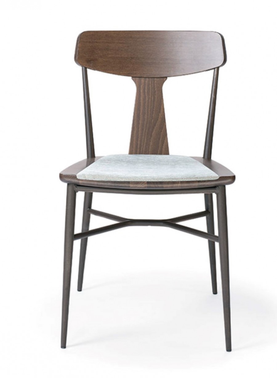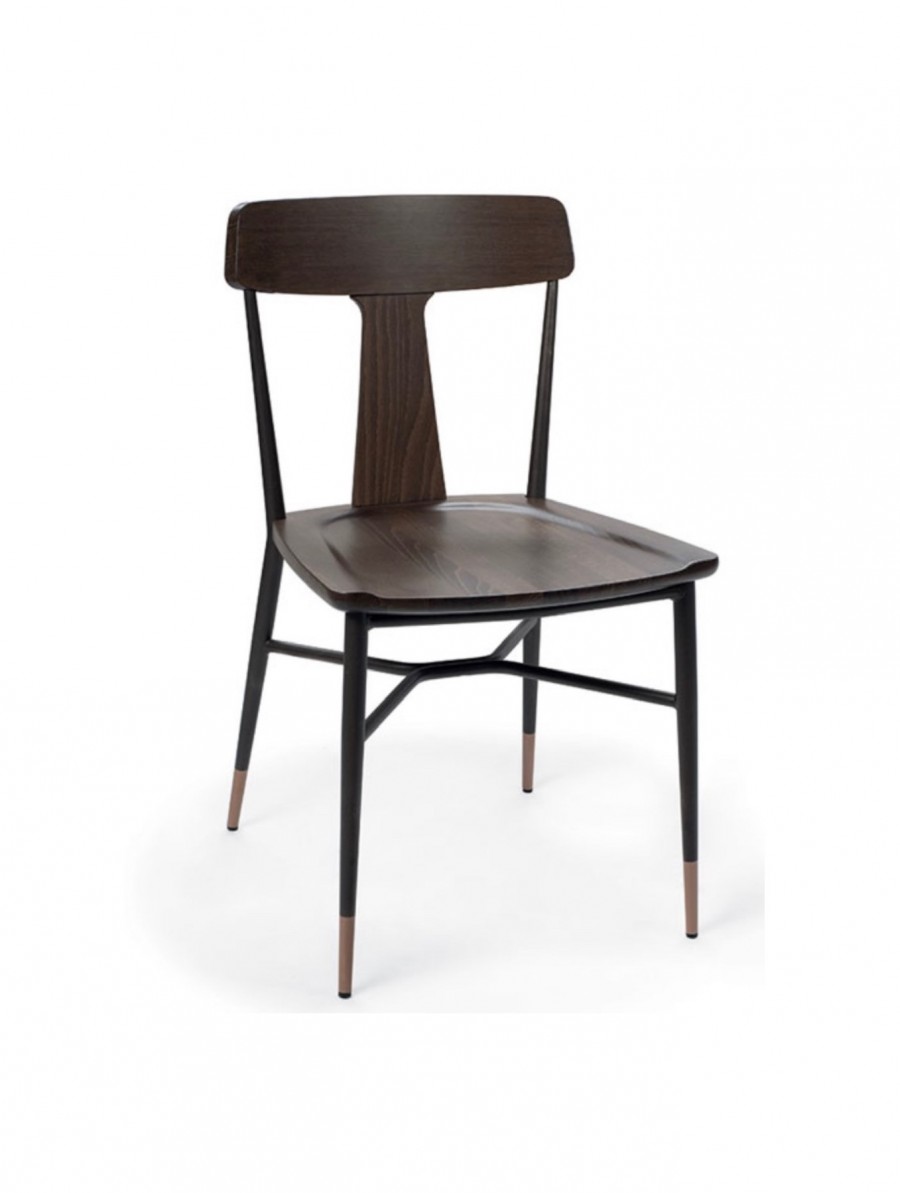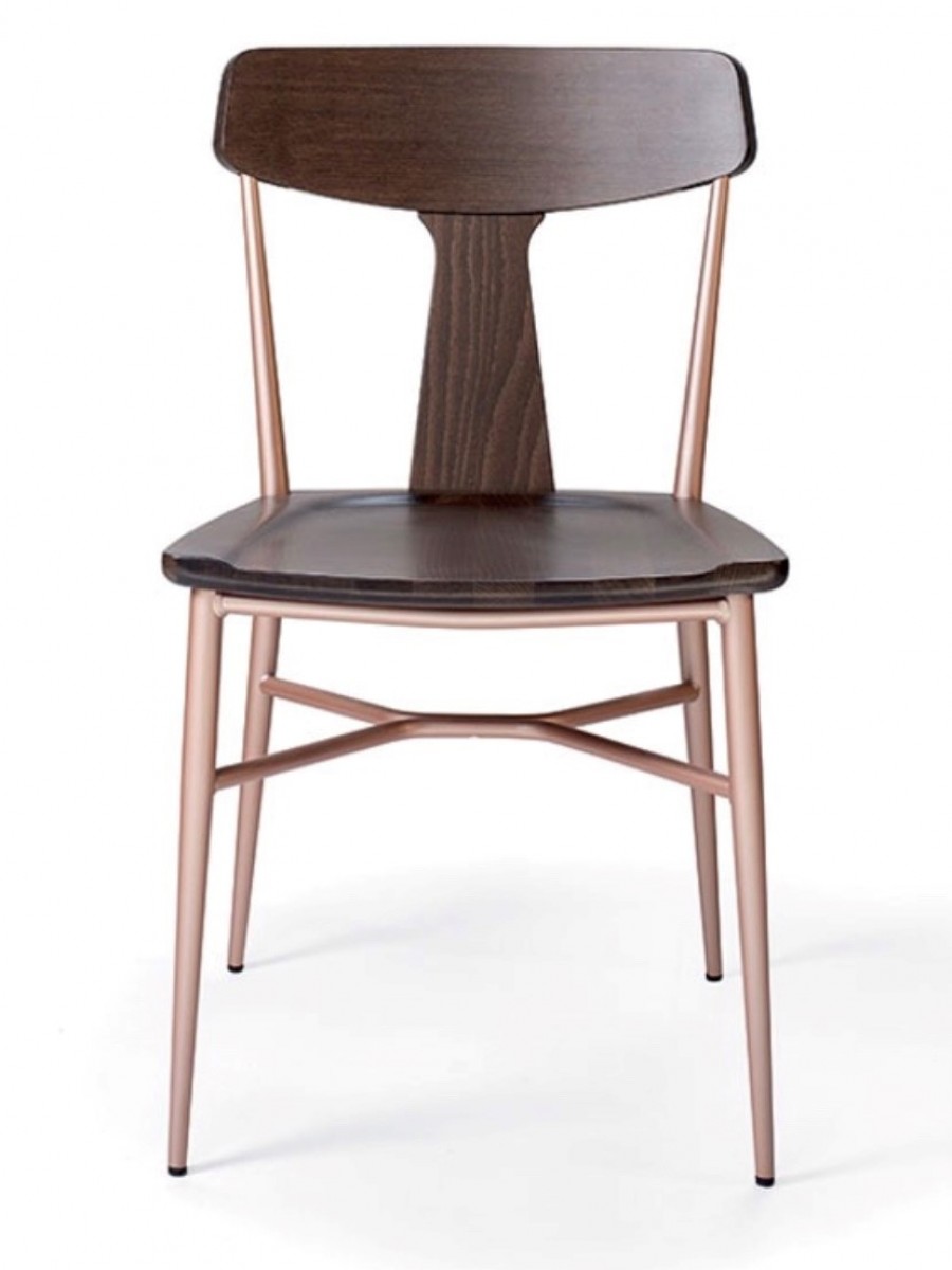 Metal Tapered 4 Legged Chair / Wooden centre infill with matching top on back of seat / Beech seat and back as standard / Braced Under Seat For Added Strength For Contract Use And Added Detail / In A Range of Standard Frame Finishes / Upcharge For Additional Frame Colour Finishes and Gold Feral frame legs / Upcharge for inserted Fixed Seat Pad with wooden boarder for added detail / In A Wide Choice Of Fabric, Vinyl Or Leather / Generous Seating Proportions / Excellent Back Support / Ideal For All Restaurants, Steak Houses and Hotels.