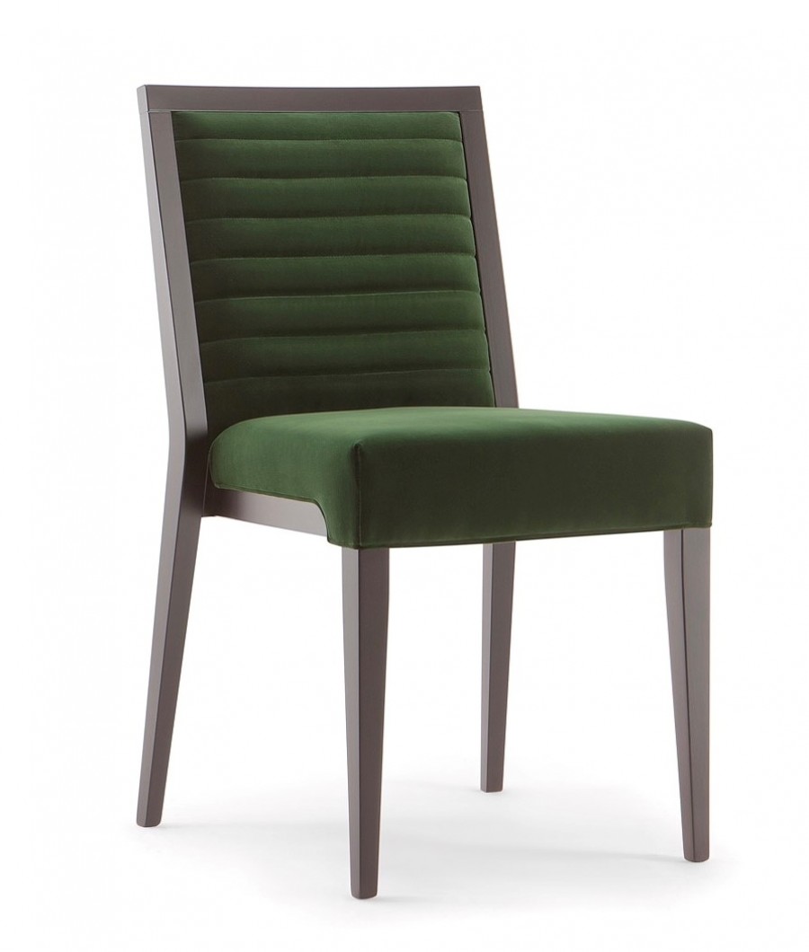 Edition Louver Side Chair / Beech Frame Standard / Wooden Tapered Legs / On Glides / Frame Runs Round Edge Of Back For Added Detail / Upcharge For Additional Wood Stain Finishes / Fully Upholstered Seat / Sprung / Well Padded For Contract Use /Only Internal Back Has Horizontal Stitch Lines For Added Upholstery Detailing / Upcharge For Two Tone Upholstery / Can Be Upholstered In Fabric, Vinyl Or Leather / Ideal For All Restaurants, Bars, Casinos And Country Clubs