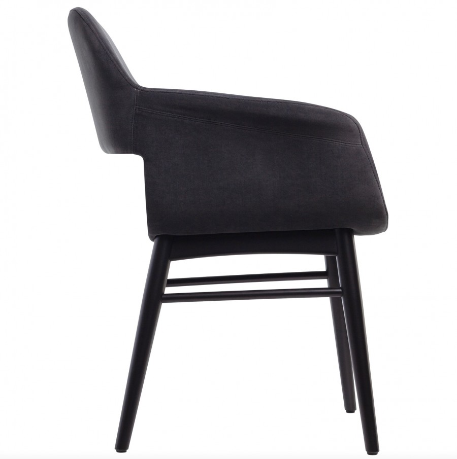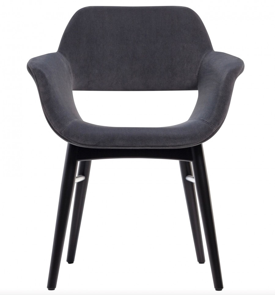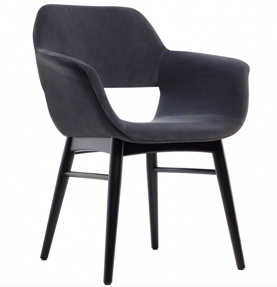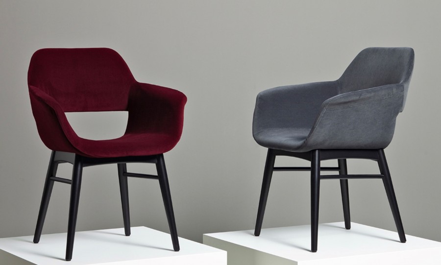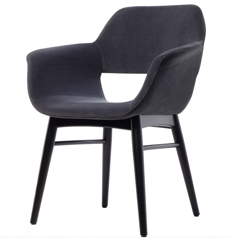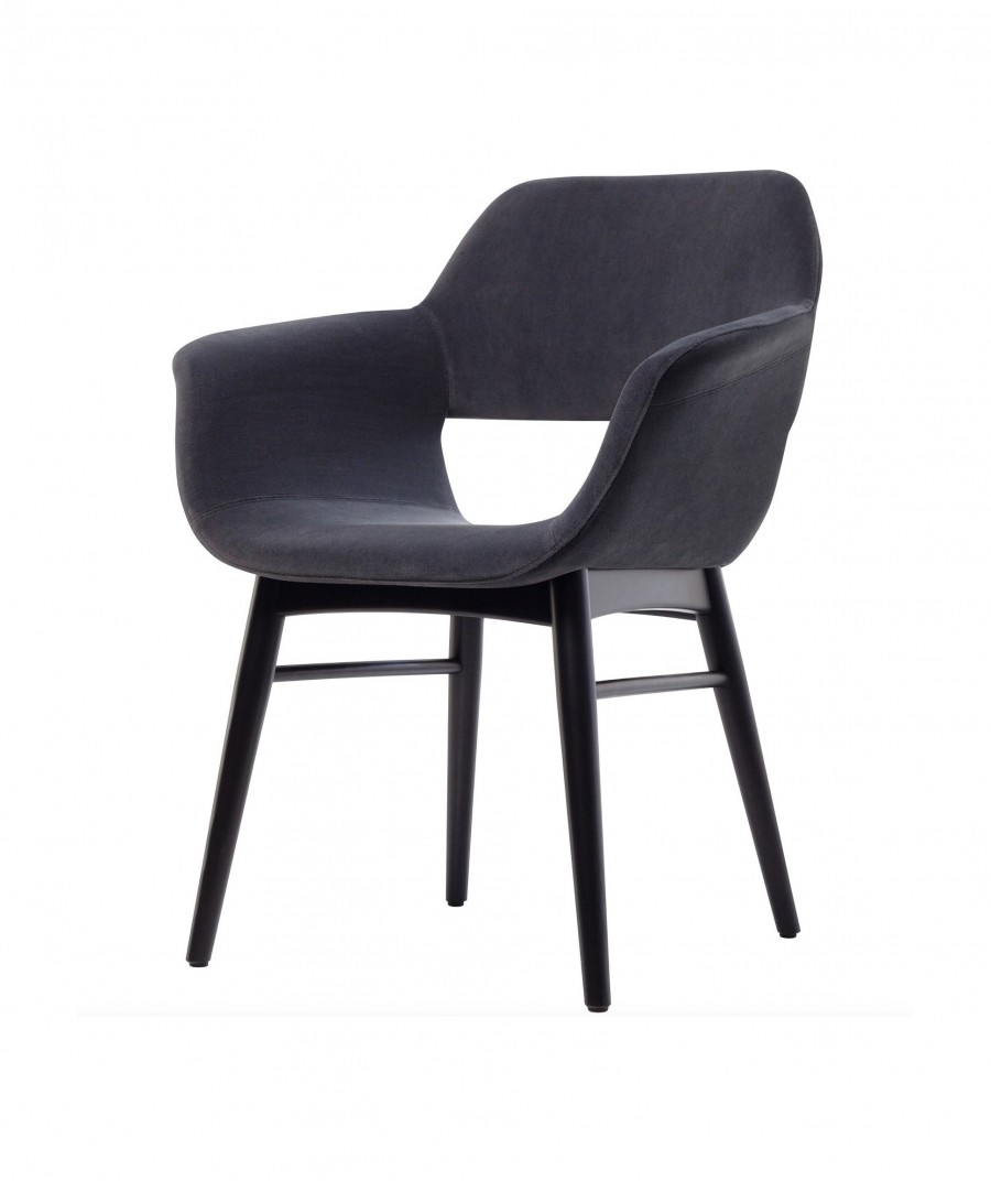 EDITION Maxi Armchair / Plywood shell / Fully upholstered in a wide choice of fabric, vinyl or leather / Fluted arms for added detail / Open slot in back / Generous seating proportions / Timber frame beech finish standard / Braced all round with additional stretchers for added strength for heavy contract use / Tapered wooden legs / On nylon glides / Ideal for restaurants, bars and casinos.