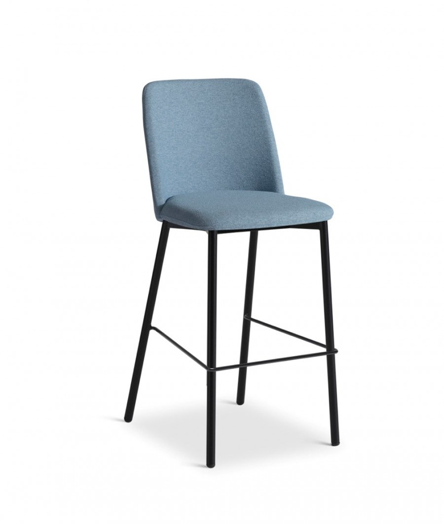 EDITION Mesa/ Fully Upholstered / Plywood Shell / Curved Back For Added Comfort / Well Padded Seat / Can Be Upholstered In Fabric, Vinyl Or Leather /Upcharge For Two Tone Upholstery / Metal Round Tubular Frame / Black Painted Frame Standard / Braced Under Seat For Heavy Contract Use/ Stretchers On Side/ Integrated Foot Rest / Ideal For All Bars, Restaurants, Casinos and Country Clubs