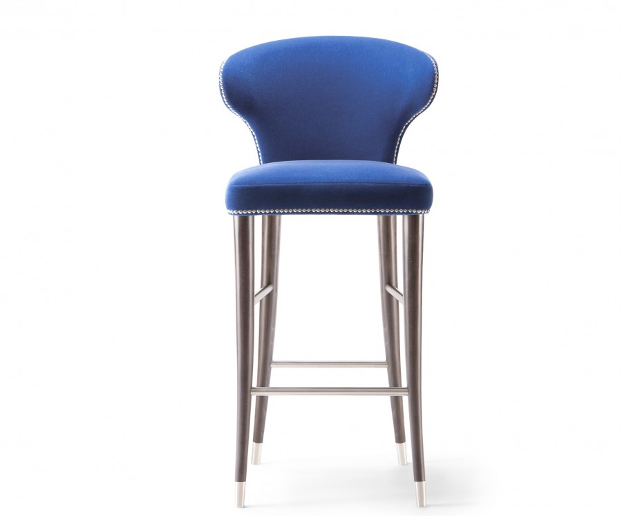 Roulette Collection: Available In Bar Height Or Counter Height / Braced All Round For Added Strength / Foot Rest In Polished Metal / Beech Tapered Legs Standard / Upcharge For Additional Wood Stain Finishes / Upcharge for Metal Ferrules On Legs / Matching Nail Head Details Standard On Chair, Various Finish Options / Plywood Seat and Back / Back Curved For Added Comfort / Can Be Upholstered in Fabric, Vinyl or Leather In A Wide Choice Of Options / Matching Lounge Furniture Available / Ideal For Hotels, Steak Houses, Restaurants, Bars And Casinos