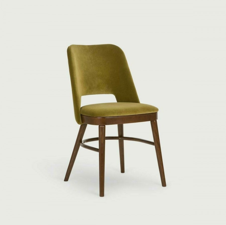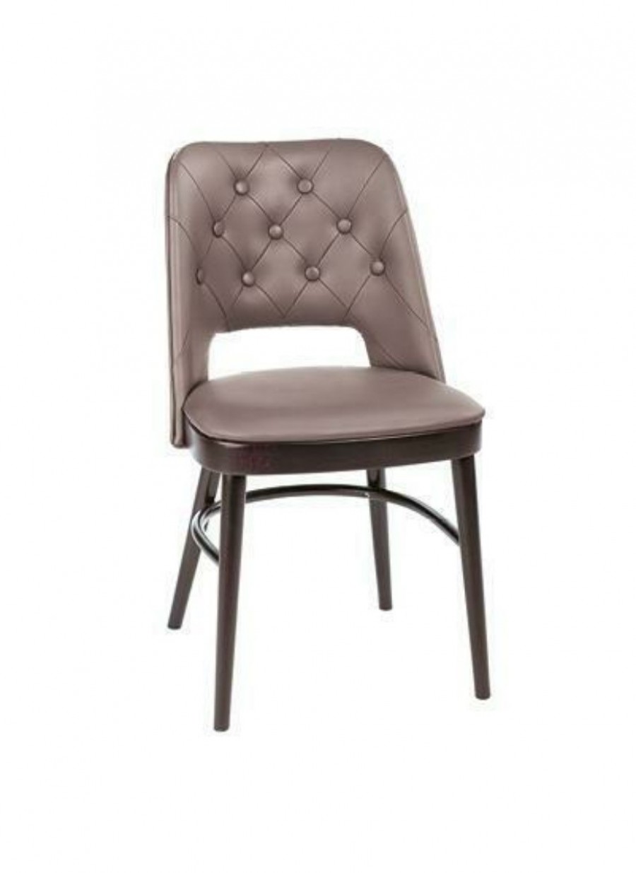 EDITION Augusta Upholstered Chair / Plywood Seat And Back / Curved Back For Added Comfort / Beech Finish Standard / Upcharge For Additional Wood Stain Finishes / Slot In Back For Added Detail / Round Wooden Tapered Legs On Glides / Stretchers Run Round Sides And Back For Heavy Contract UseĀ / Fully Upholstered Seat And Back / Can Be Upholstered In Fabric, Vinyl Or LeatherĀ / Upcharge For Button Detailing And Diamond Sewn Back / Ideal For All Bars, Restaurants, Casinos And Country Clubs