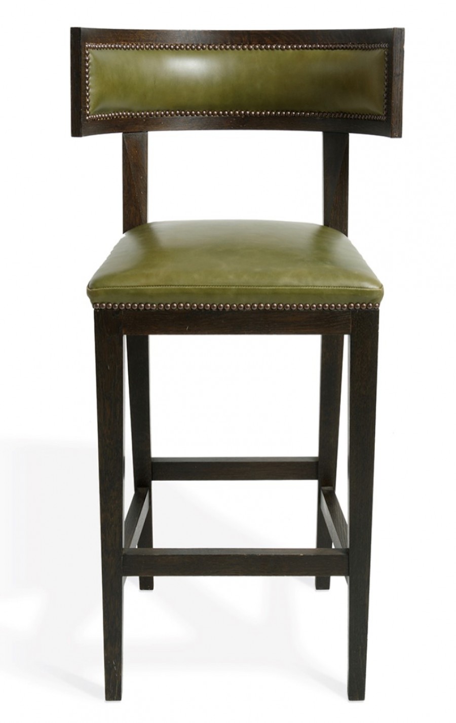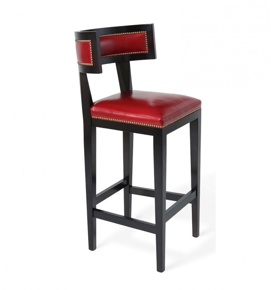 Gale Stool / Available in counter and bar height / Curved back for added comfort / Generous seating proportions / Fully upholstered seat / Upholstered in fabric, vinyl or leather / Upcharge for two-tone upholstery / Nail head detail on round seat and also internal and external back in a choice colour finishes / Integrated footrest / Beech frame standard / Upcharge for additional wood stain finishes / Ideal for all hospitality environments included high end restaurants, bar areas and casinos.