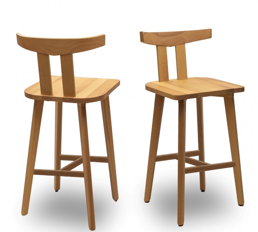 Habitat counter height or bar height stool / Beech frame standard / Upcharge for additional wood stain colour or painted finishes; recommended black or white paint finish for outdoor use / Wooden tapered legs on nylon glides / Minimal design back rest / Two vertical slats and one curved horizontal slat on back / Upcharge for loose seat cushion / Can be upholstered in fabric or vinyl in a wide choice of finishes / Also available to match; side chair / Minimum quantity of 20 (same colour/finish) / Ideal for all outdoor dining applications.