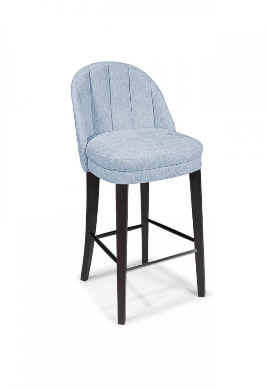 EDITION Henderson Stool / Available in counter and bar height / Plywood seat and back / Fully upholstered / Well padded seat / Curved back with quilted vertical stitching for added detail / Can be upholstered in fabric, vinyl or leather / Upcharge for two-tone upholstery / Wooden tapered legs / Beech standard / On nylon glides / Ideal for restaurants and hotels.
