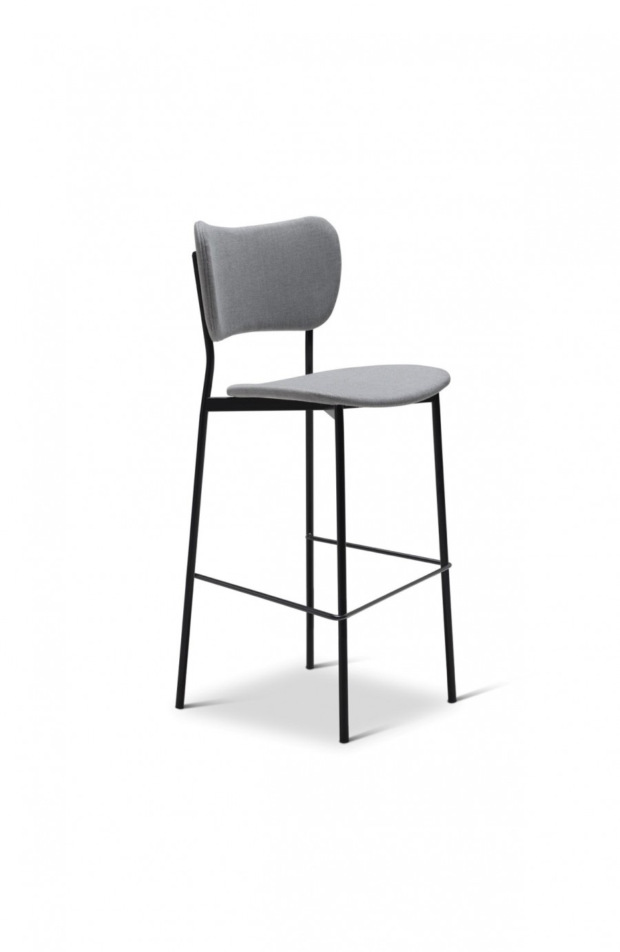 Mendez Bar Stool / Fully upholstered seat and back / Black painted powder coated frame standard / Upcharge for additional frame finishes / Plywood seat fully upholstered in a wide choice of fabrics, vinyl or leathers / Black powder coated metal round tube frame / Braced under seat for added strength / On nylon glides / Ideal for restaurants, country clubs, coffee shops and hotels.