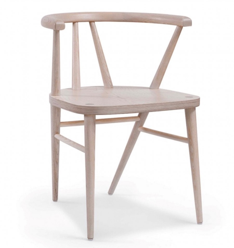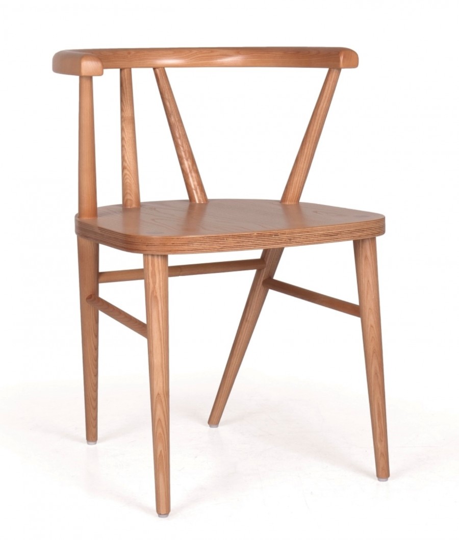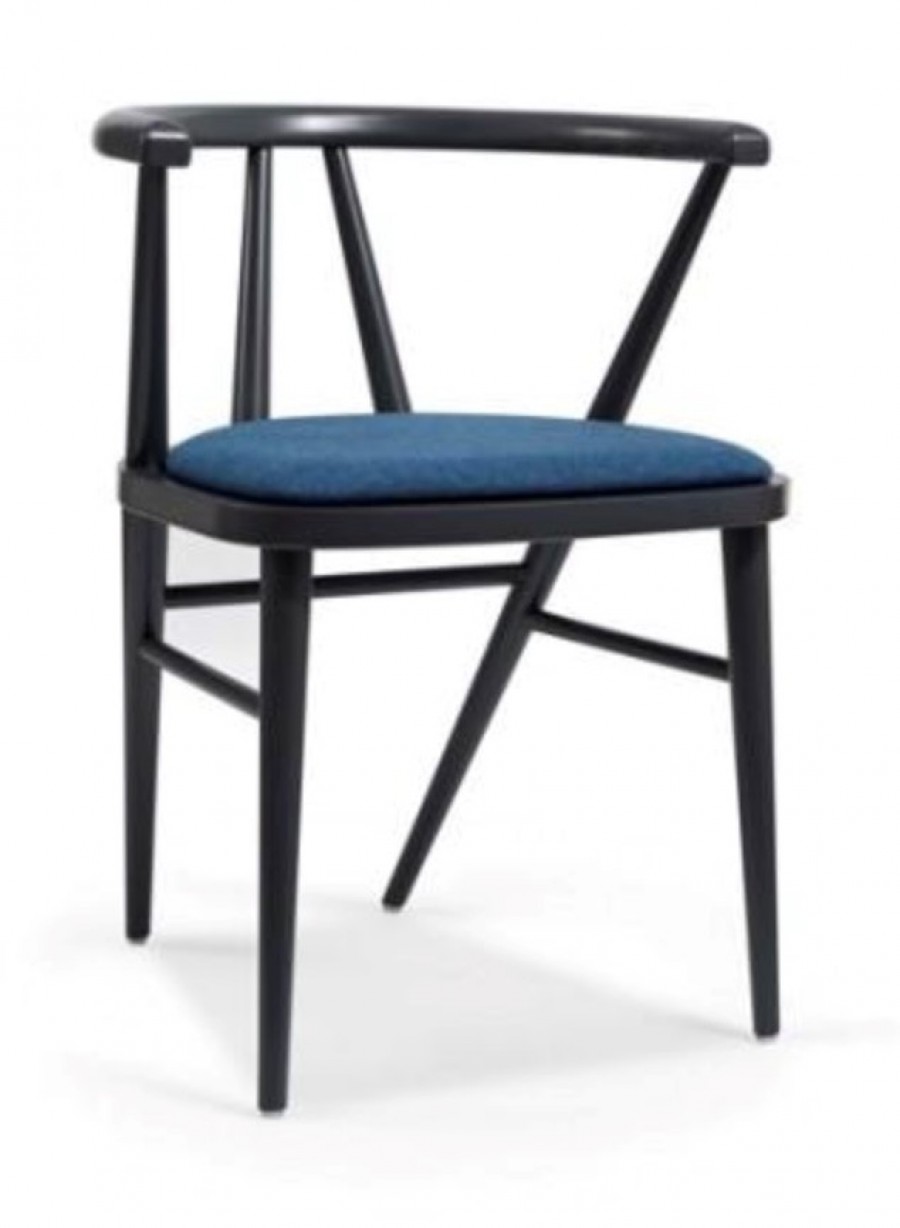 Milos Armchair / Beech wooden frame standard / Wooden tapered legs on nylon glides / Braced on sides and back for heavy contract use / Curved back for added comfort / Upcharge for wood stain or colour finishes / Also available with upholstered seat / Can be upholstered in fabric, vinyl, leather or COM fabric / Ideal for coffee shops, restaurants, hotels and country clubs.