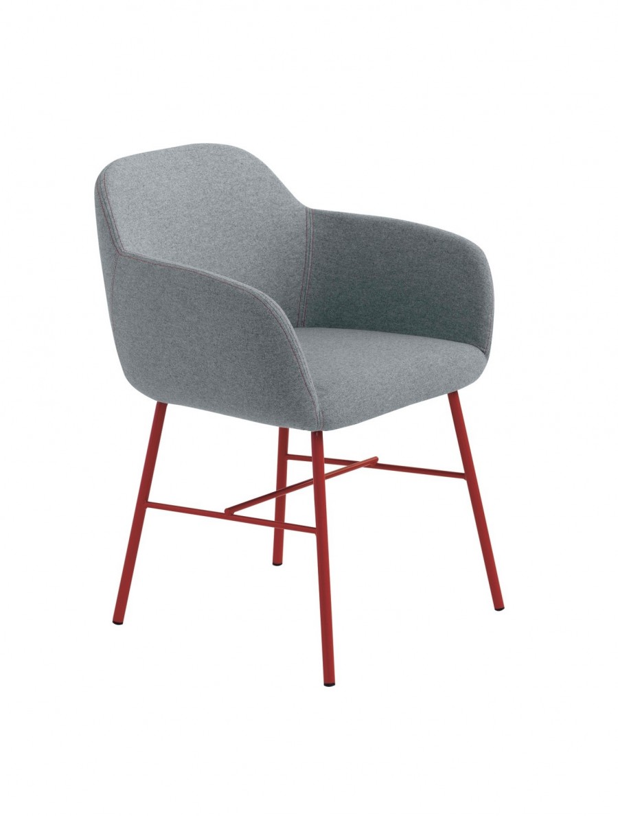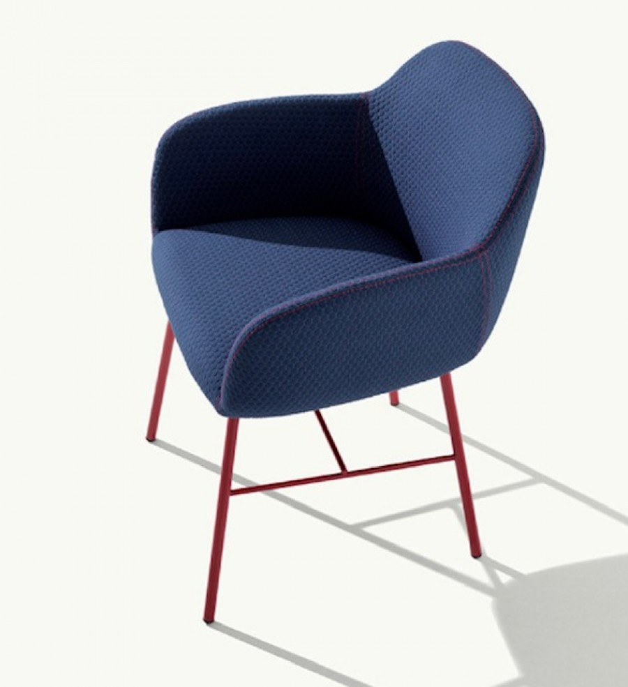 EDITION Stiltsville Armchair / / Plywood shell / Well padded seat and back / Fully upholstered / Integrated arms / Can be upholstered in fabric, vinyl or leather / Generous seating proportions / Metal round tubular frame / On nylon glides / Various painted colour finishes available / Upcharge for polished chrome / Braced on sides and centre for heavy contract use / Ideal for all hospitality environments.