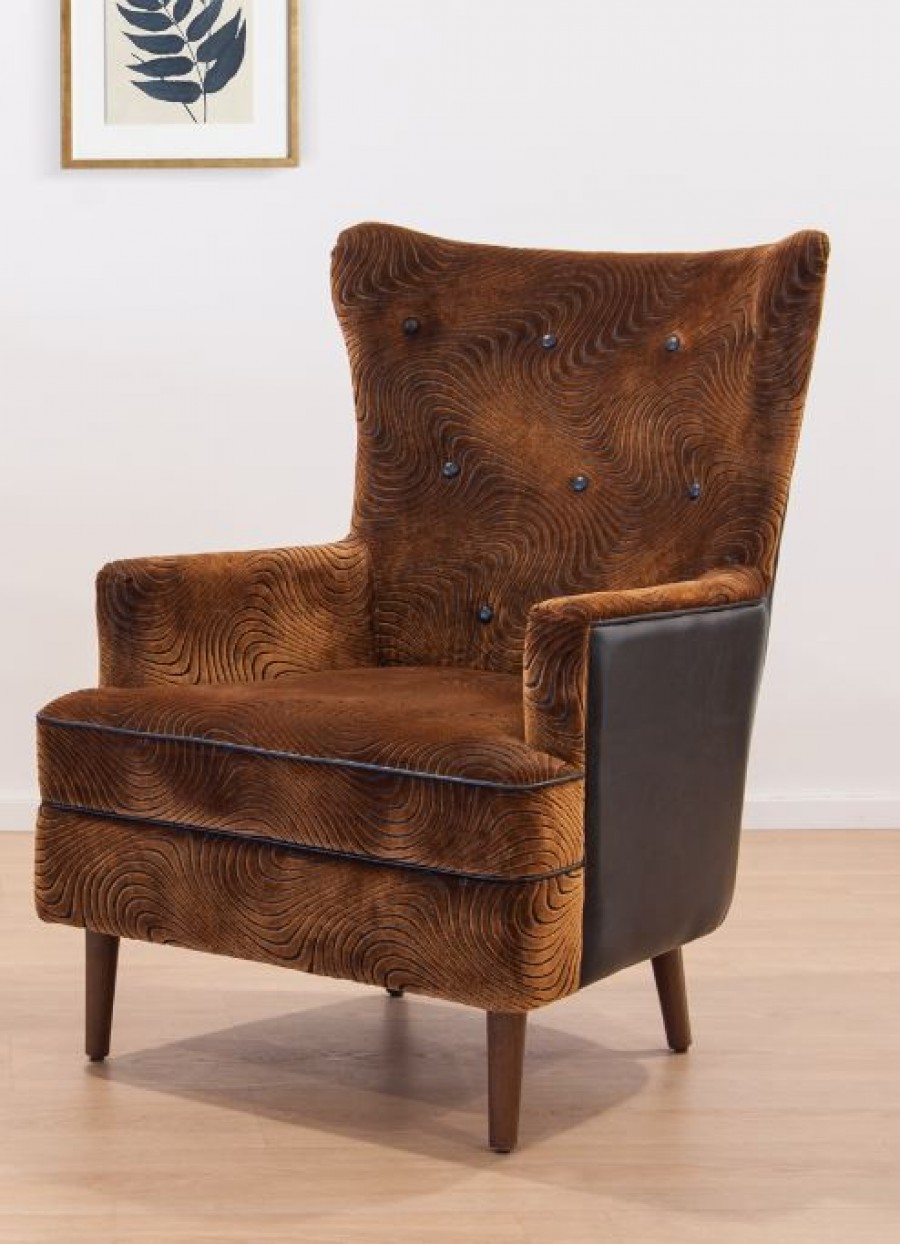 EDITION Avondale Lounge Chair / Beech Wood Frame Standard / Additional Wood Stain Finishes Available / Tapered Legs On Glides / Generous Seating Proportions / Well Padded Seat Cushion / Sprung Seat / Deep Seat For Added Comfort / Fully Upholstered Seat And Back / Fully Upholstered Integrated Arms / High Curved Back For Added Comfort / Available With Two Tone Upholstery / Buttoned Inner Back For Extra Detail / Ideal For Lounge Areas, Lobby Areas And Hotel Bedrooms