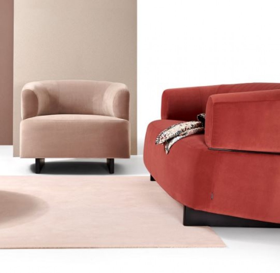 EDITION Coral Lounge Chair / Natural Ash wooden legs or black stained wooden legs standard / Generous Seating Proportions / Well Padded Seat Cushion / Sprung Seat / Fully Upholstered Seat And Curved Back / Integrated Upholstered Curved Arms / Available With Two Tone Upholstery / Ideal For Lounge Areas, Lobby Areas And Hotel Bedrooms