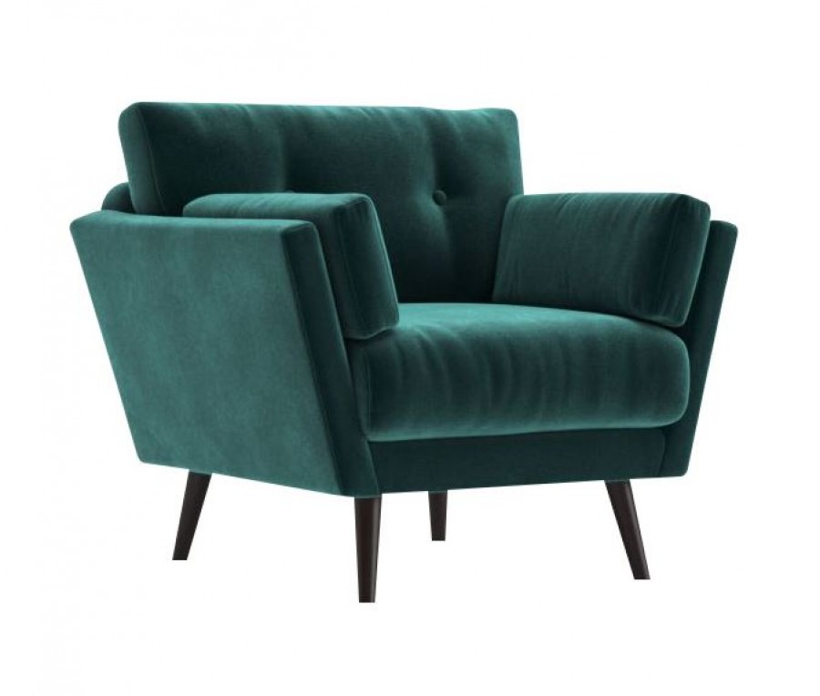 EDITION Crest Lounge Chair / Beech Wood Standard / Additional Wood Stain Finishes Available / Tapered Legs On Glides / Generous Seating Proportions / Well Padded Seat Cushion / Sprung Seat / Fully Upholstered Seat And Back / Integrated Upholstered Arms / Removable Seat And Back Cushion / Side Cushions Included / Buttoned Inner Back For Added Detail / Available With Two Tone Upholstery / Ideal For Lounge Areas, Lobby Areas And Hotel Bedrooms