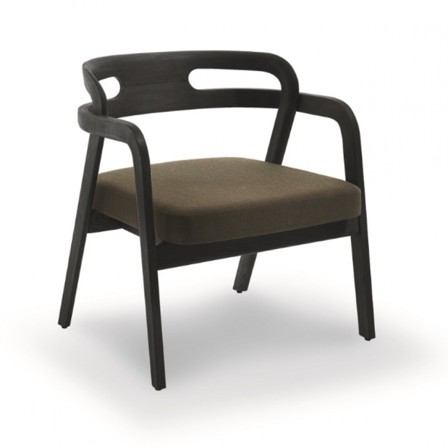 Area EDITION Genea Lazy Lounge Chair has been designed for hospitality projects with a cost effective price point / Beech Wooden Frame Standard / Additional wood stain finishes and colours available / Integrated Arms / Fully Upholstered Seat Standard / Curved Wooden Back / Ideal for Hotels and Lounge Areas