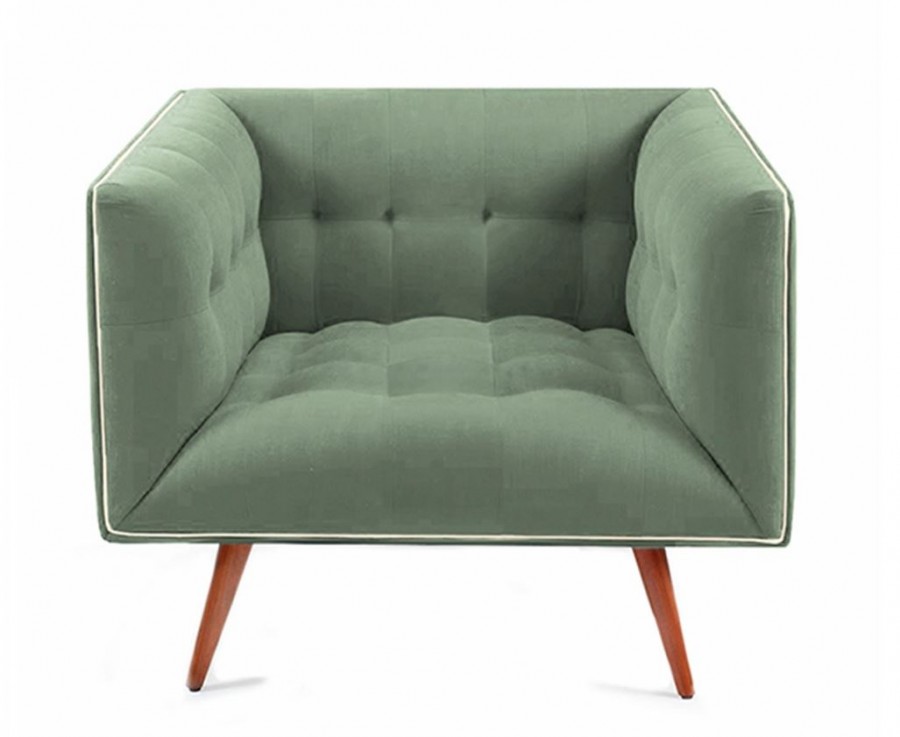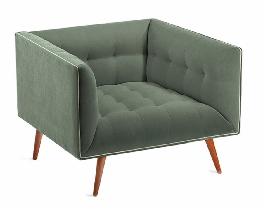 EDITION Grove Lounge Chair / Beech Wood Standard / Additional Wood Stain Finishes Available / Round Tapered Legs On Glides / Generous Seating Proportions / Well Padded Seat Cushion / Sprung Seat / Fully Upholstered Seat And Back / Integrated Upholstered Arms / Buttoned Detailing On Inner Sides And Back / Available With Two Tone Upholstery / Ideal For Lounge Areas, Lobby Areas And Hotel Bedrooms