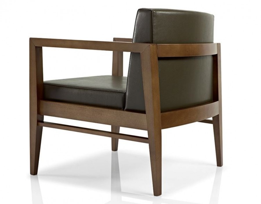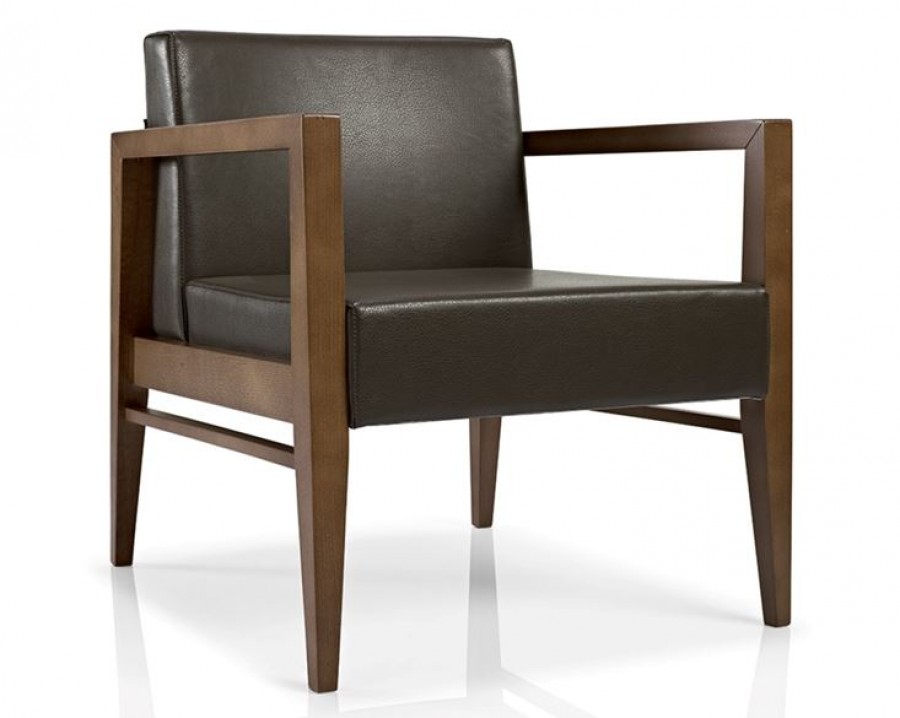 EDITION Jenson Lounge Chair / Beech Frame Standard / Additional Wood Stain Finishes Available / Integrated Feature Arms / Fully Upholstered Seat And Back / In A Wide Choice Of Fabric Options / Wooden Tapered Legs / On Glides / Braced On Sides For Added Strength / Generous Seating Proportions / Exposed Frame Detailing / Ideal for Coffee Shops and Restaurants