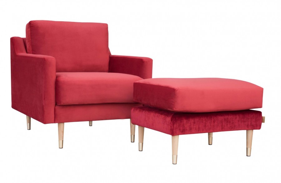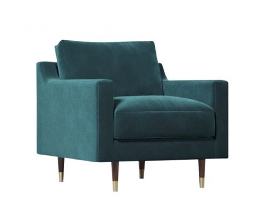 EDITION Johnson Lounge Chair / Beech Wood Standard / Additional Wood Stain Finishes Available / Tapered Legs On Glides / Generous Seating Proportions / Well Padded Seat Cushion / Sprung Seat / Fully Upholstered Seat And Back / Integrated Upholstered Arms / Removable Seat And Back Cushion / Brass Ferrules On Feet Standard / Available With Two Tone Upholstery / Upcharge For Matching Foot Stool / Ideal For Lounge Areas, Lobby Areas And Hotel Bedrooms