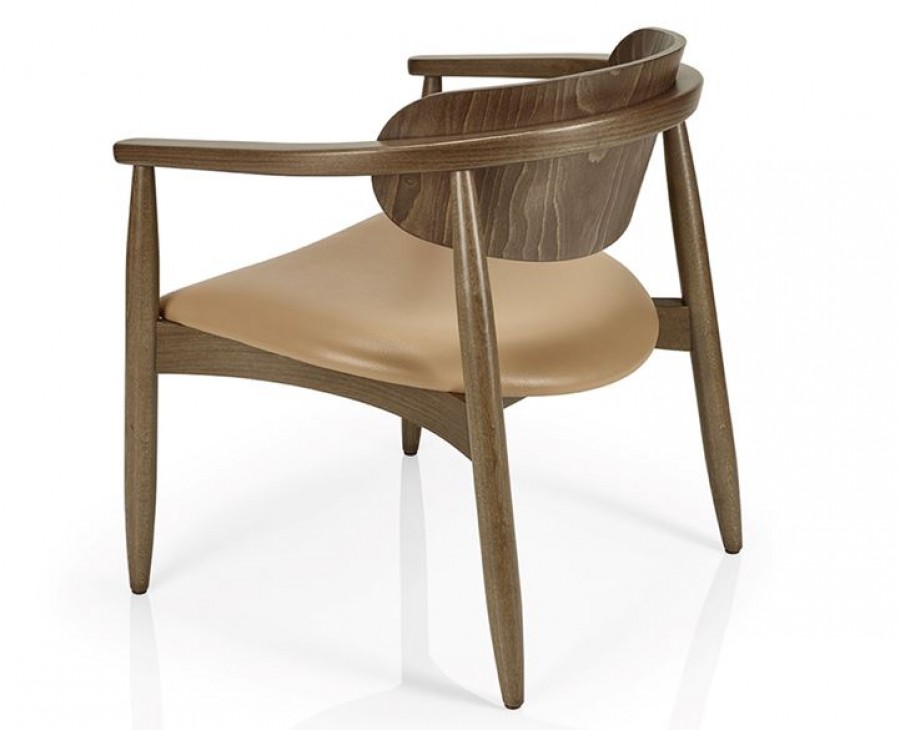 EDITION Lister Wood Lounge Chair / Beech Frame Standard / Additional Wood Stain Finishes Available / Integrated Curved Arms / Fully Upholstered Seat / In A Wide Choice Of Fabric Options / Plywood Back / Wooden Tapered Legs / On Glides / Braced On Sides For Added Strength / Generous Seating Proportions / Curved Back / Exposed Frame Detailing / Ideal for Coffee Shops and Restaurants