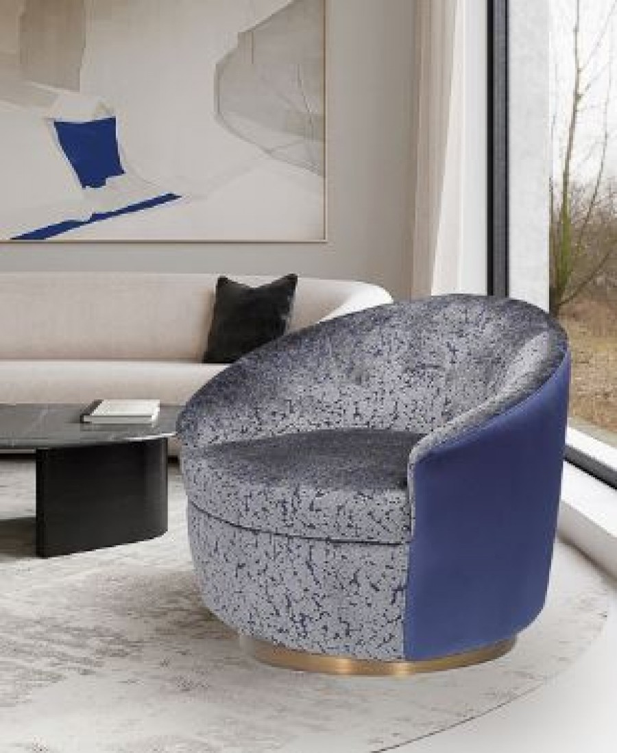 EDITION Martin Lounge Chair / Brass Swivel Base Only / Generous Seating Proportions / Well Padded Seat Cushion / Sprung Seat / Fully Upholstered Seat And Back / Integrated Upholstered Arms / Available With Two Tone Upholstery / Individually Stitched Back Panels / Ideal For Lounge Areas, Lobby Areas And Hotel Bedrooms