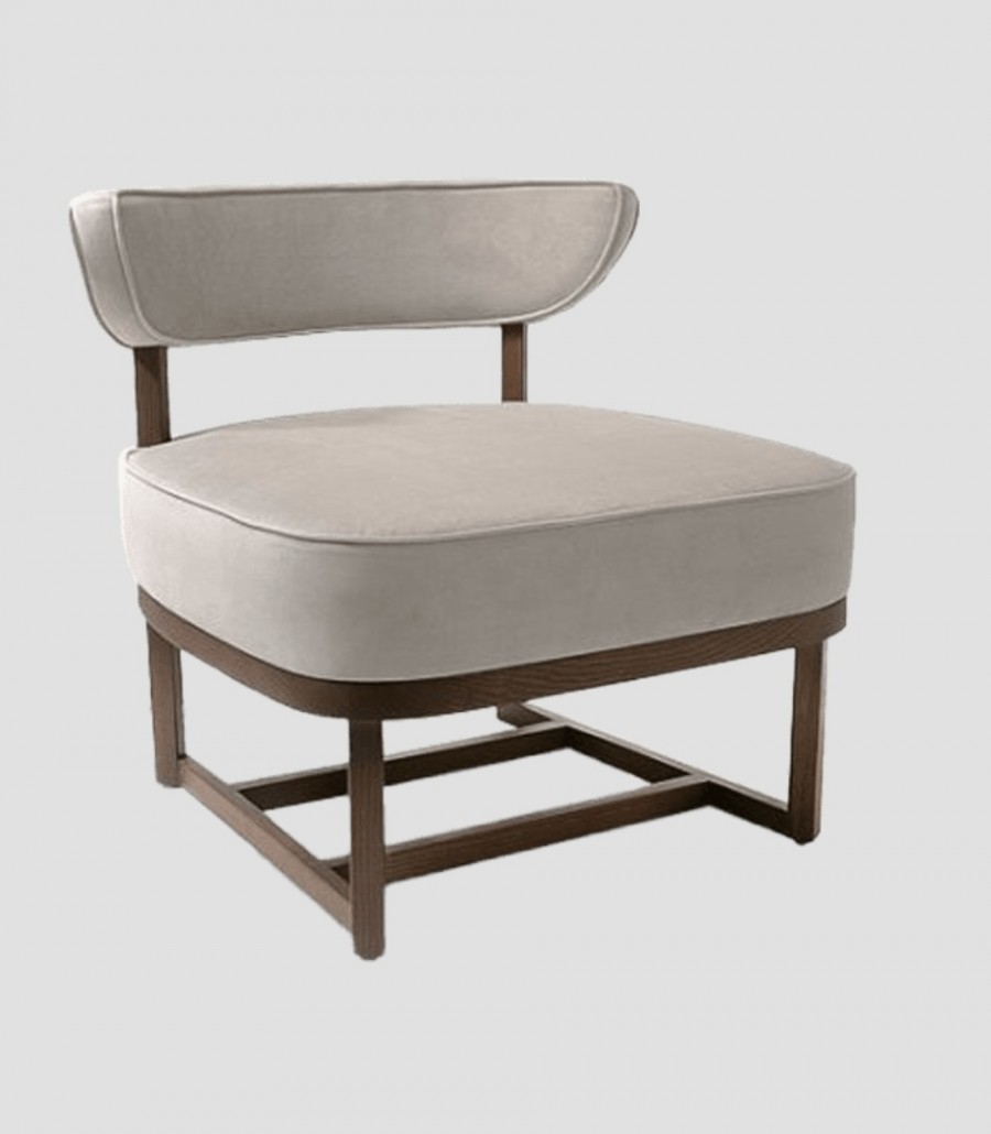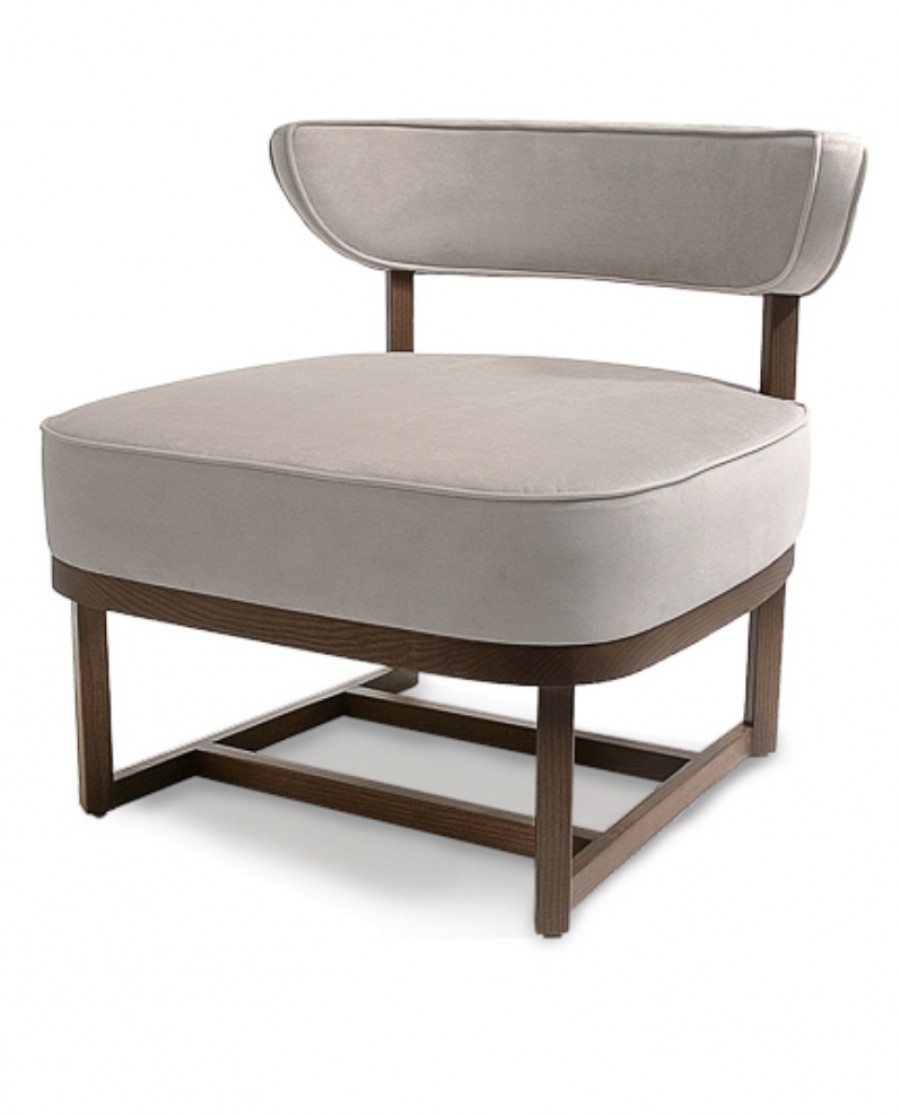 EDITION Watson Lounge Chair / Ash Wood Standard / Additional Wood Stain Finishes Available / Sled Frame On Glides / Braced In Centre For Added Strength / Exposed Frame Detailing / Generous Seating Proportions / Well Padded Seat Cushion / Sprung Seat / Fully Upholstered Seat And Curved Back / Available With Two Tone Upholstery / Ideal For Lounge Areas, Lobby Areas And Hotel Bedrooms.