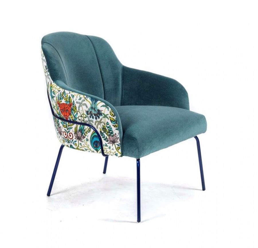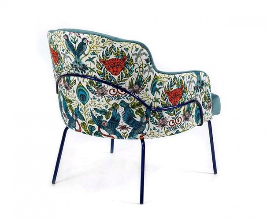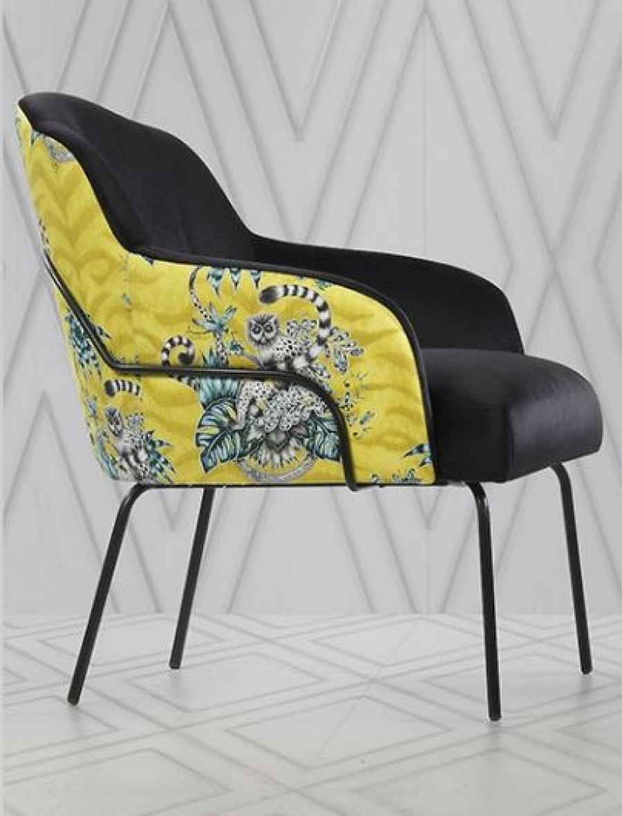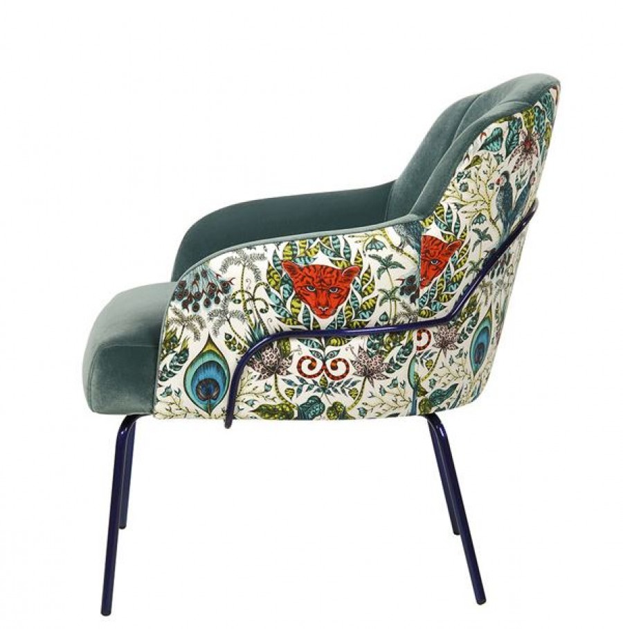 EDITION Zimmer Lounge Chair / Painted Metal Legs With Various Metal Colour Options Available / Tubular Rodded Frame Around Back / On Glides / Generous Seating Proportions / Well Padded Seat Cushion / Sprung Seat / Fully Upholstered Seat And Curved Back / Integrated Arms / Available With Two Tone Upholstery / Ideal For Lounge Areas, Lobby Areas And Hotel Bedrooms