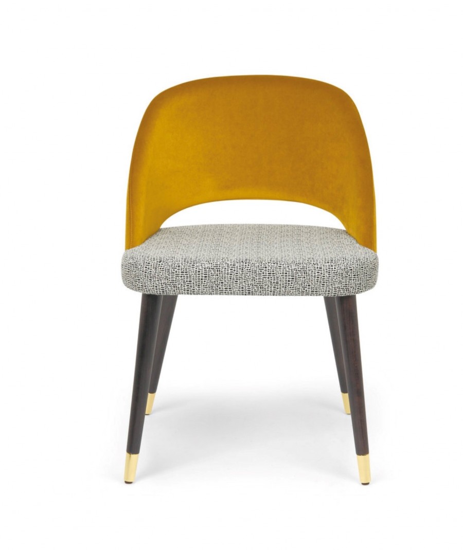 Plywood Seat And Back / Fully Upholstered / Slot In Back For Added Detail / Can Be Upholstered In Fabric, Vinyl or Leather / Generous Seating Proportions / Walnut Wooden Round Tapered Legs Standard, Brass Ferrules Standard / Upcharge For Additional Wood Stain Finishes / Ideal For Restaurants, Bars, Hotels, Casino, Steak Houses